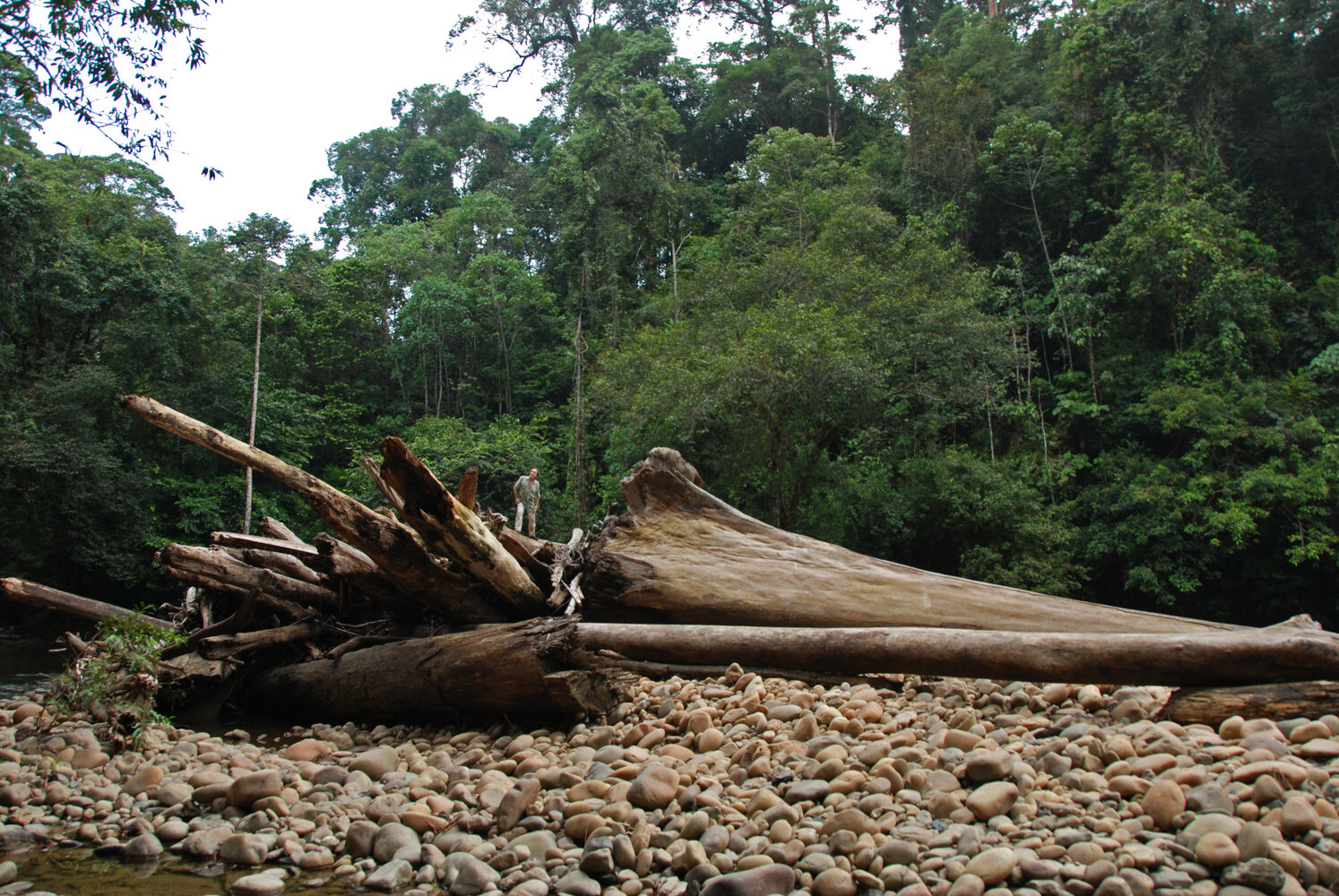 Dipterocarpus oblongifolius, huge dead fallen trunk along the bank of Tahan river, Taman Negara, Malaysia