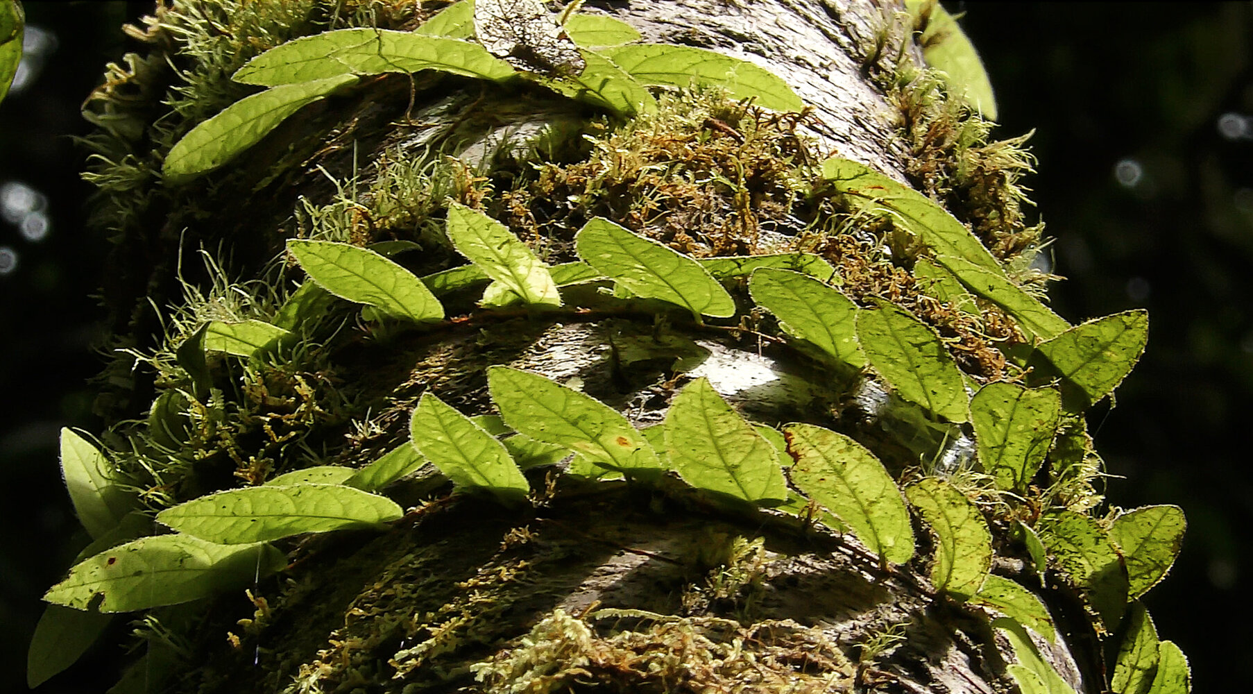 Ficus trichocarpa, lateral stems clasping horizontally the host tree trunk like the adventitious roots of Clusia or many climbing Araceae, Deramakot FR, Sabah, Borneo