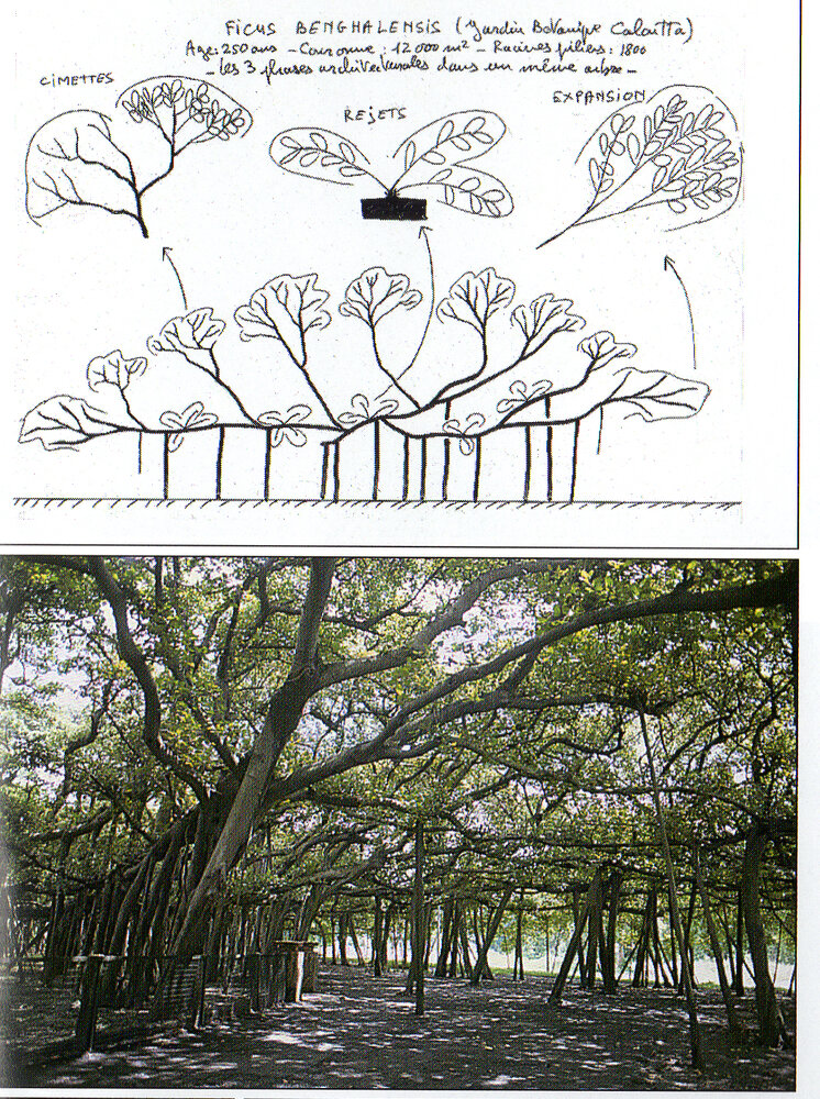 Ficus benghalensis, growth habits, Calcutta Botanical Garden in Blanc P. - 2004 - S'éviter, se réajuster, se mimer, se répéter, de l'art de la cohabitation chez les plantes de sous-bois - Hommes et Plantes 48, 22-37..jpg