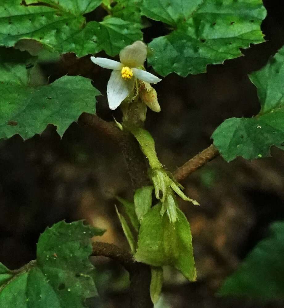 Begonia calliantha, leaves and male flower, Rondon Ridge, 2000 m asl, Mount Hagen, Papua New Guinea