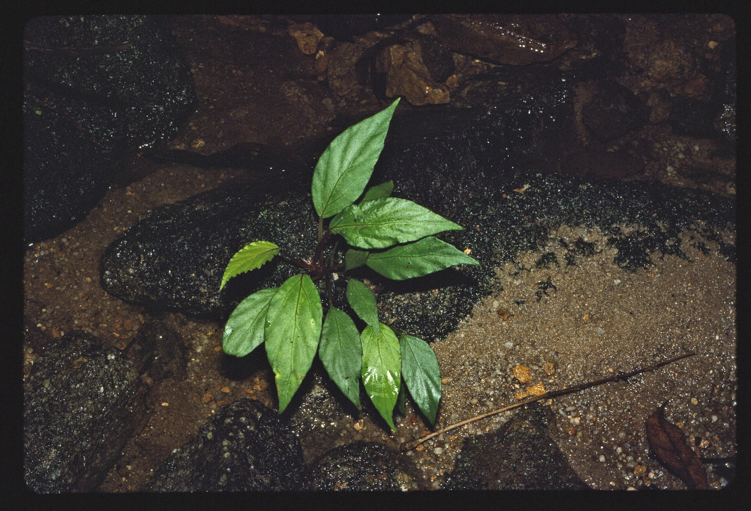 Begonia rhoephila on a rock in a forest stream, Templer Park, Selangor, Malaysia
