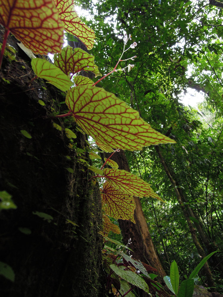 Begonia sinuata, leaf undersurface with red nerves, Si Phangna NP, Thailand