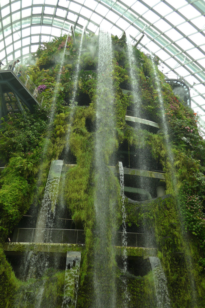 Agrostis stolonifera, probably unintentionnally introduced as a beautiful invasive grass covering large areas of the waterfall in the Cloud Forest at Gardens by the Bay, Singapore