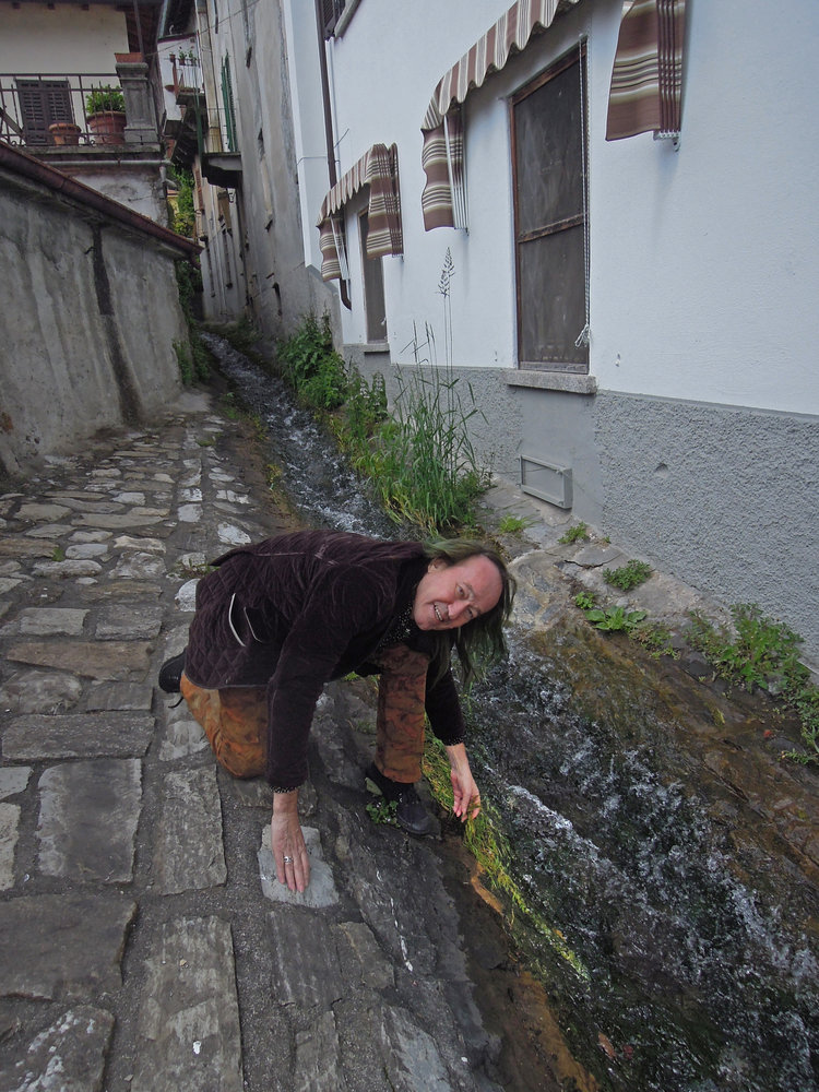 Patrick Blanc holding the rheophytic Agrostis stolonifera, Como lake, Italy, April 2016