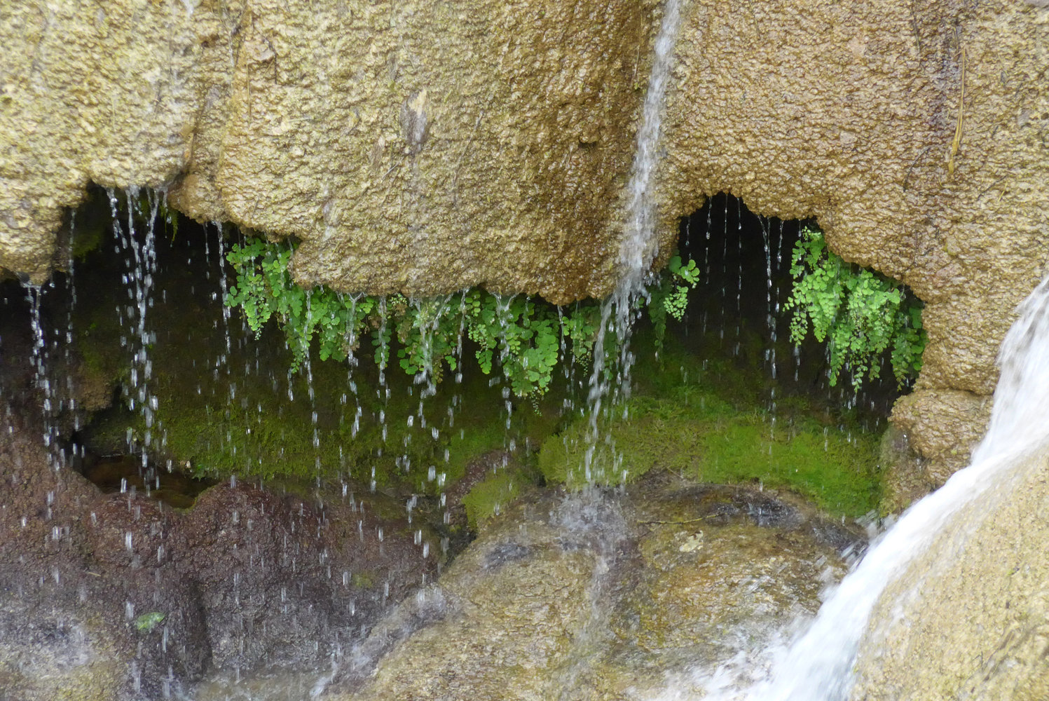 Travertine waterfall with carbonate concretions, mosses and Adiantum capillus-veneris, El Nicho, Cienfuegos, Cuba