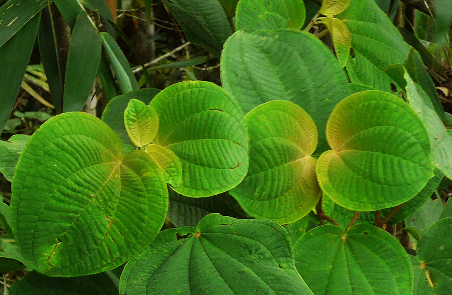 Poikilogyne cf. multiflora, maturing opposite leaves, Varirata NP, Papua New Guinea