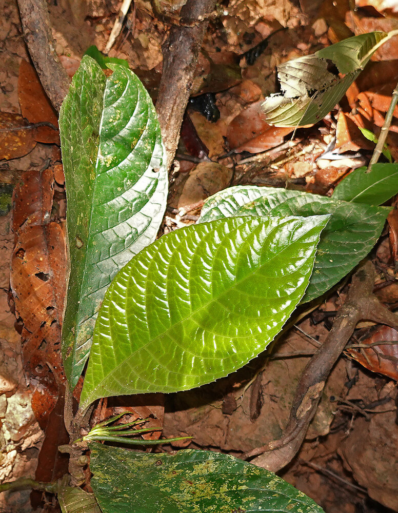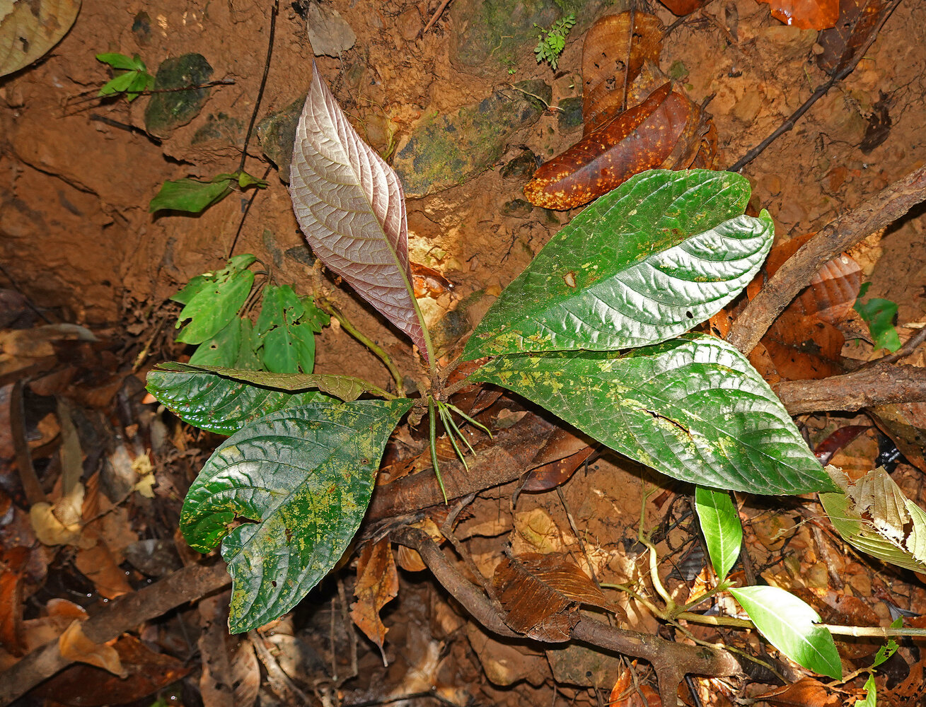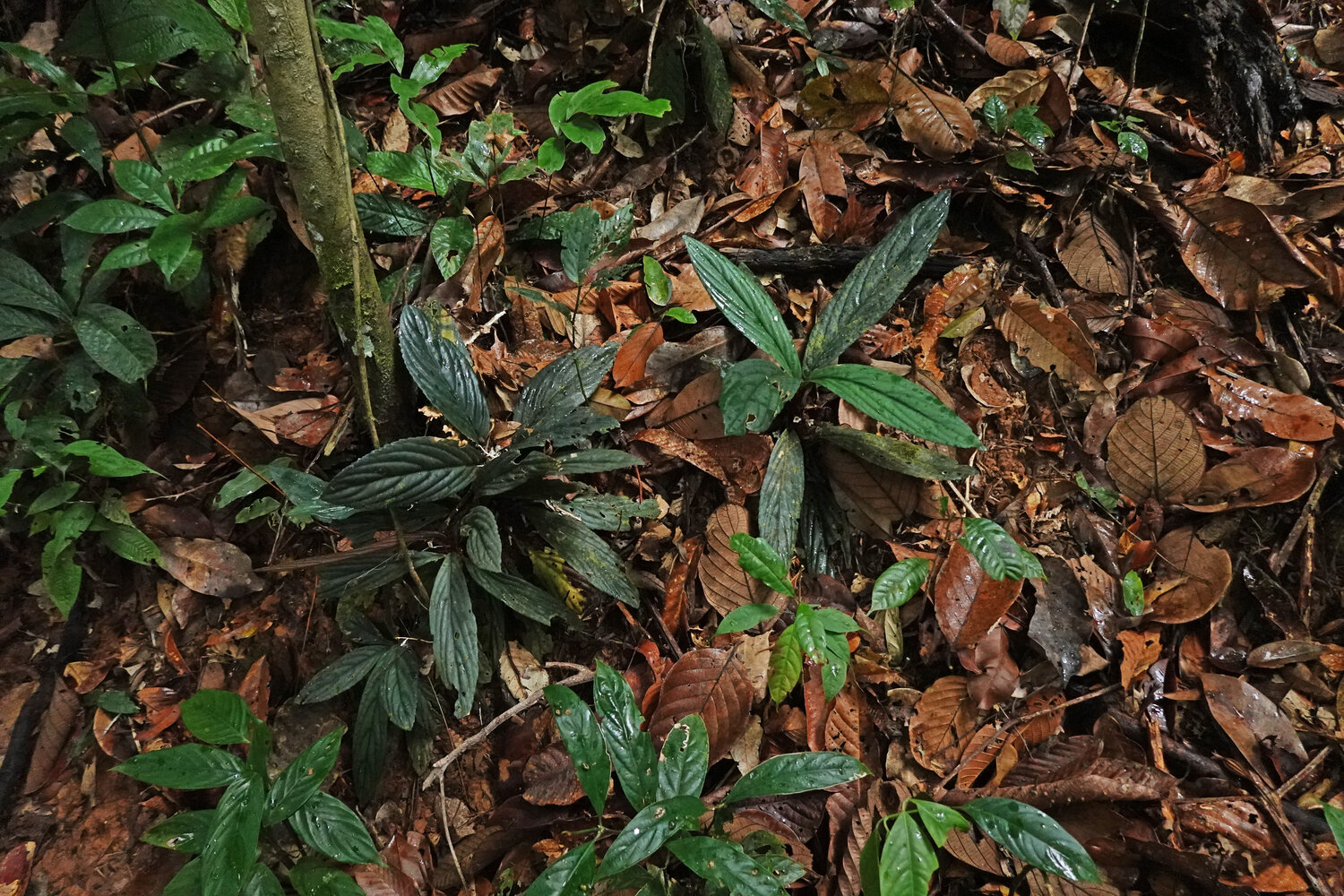 Cyrtandra sp., plagiotropic stem and perfect shade avoidance in the distribution of the anisophyllous leaves, Deramakot FR, Sabah, Borneo