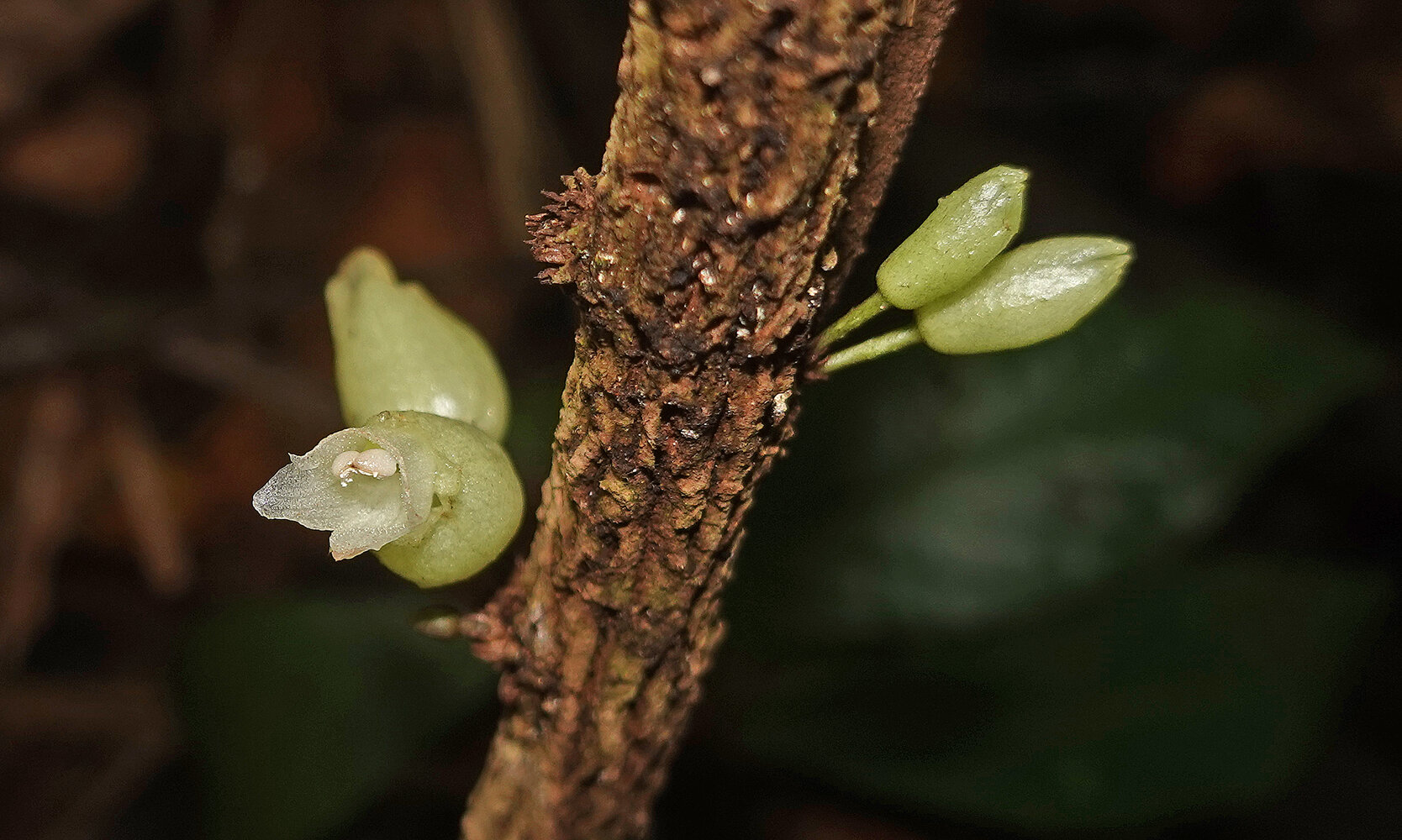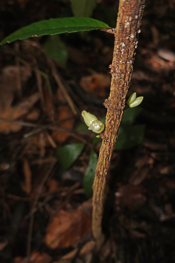 Cyrtandra sp. sect. Centrosiphon, cauliflory along the erect lignified stem, Malagufuk, Sorong, Papua