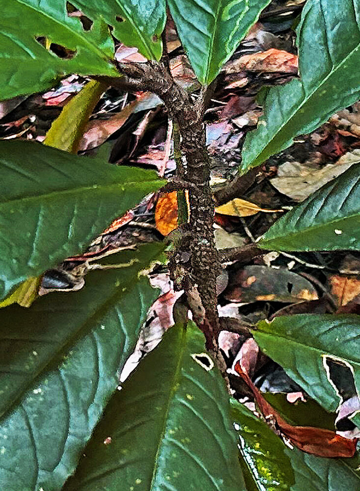 Cyrtandra sp. sect. Centrosiphon, complete anisophylly on the first plagiotropic then orthotropic single stem, the subsequent reorientation of the big leaves being due to differentiate torsion of each leaf petiole, Malagufuk, Sorong, Papua copie