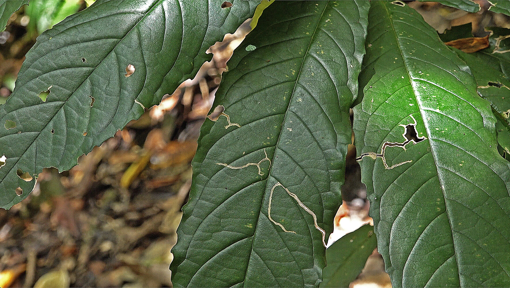 Cyrtandra sp. sect. Centrosiphon, differential petiole torsions resulting in the perfect not overlapping of leaf blades, probably due to reflectance and transmission of far red light wavelengths, Malagufuk, Sorong, Papua
