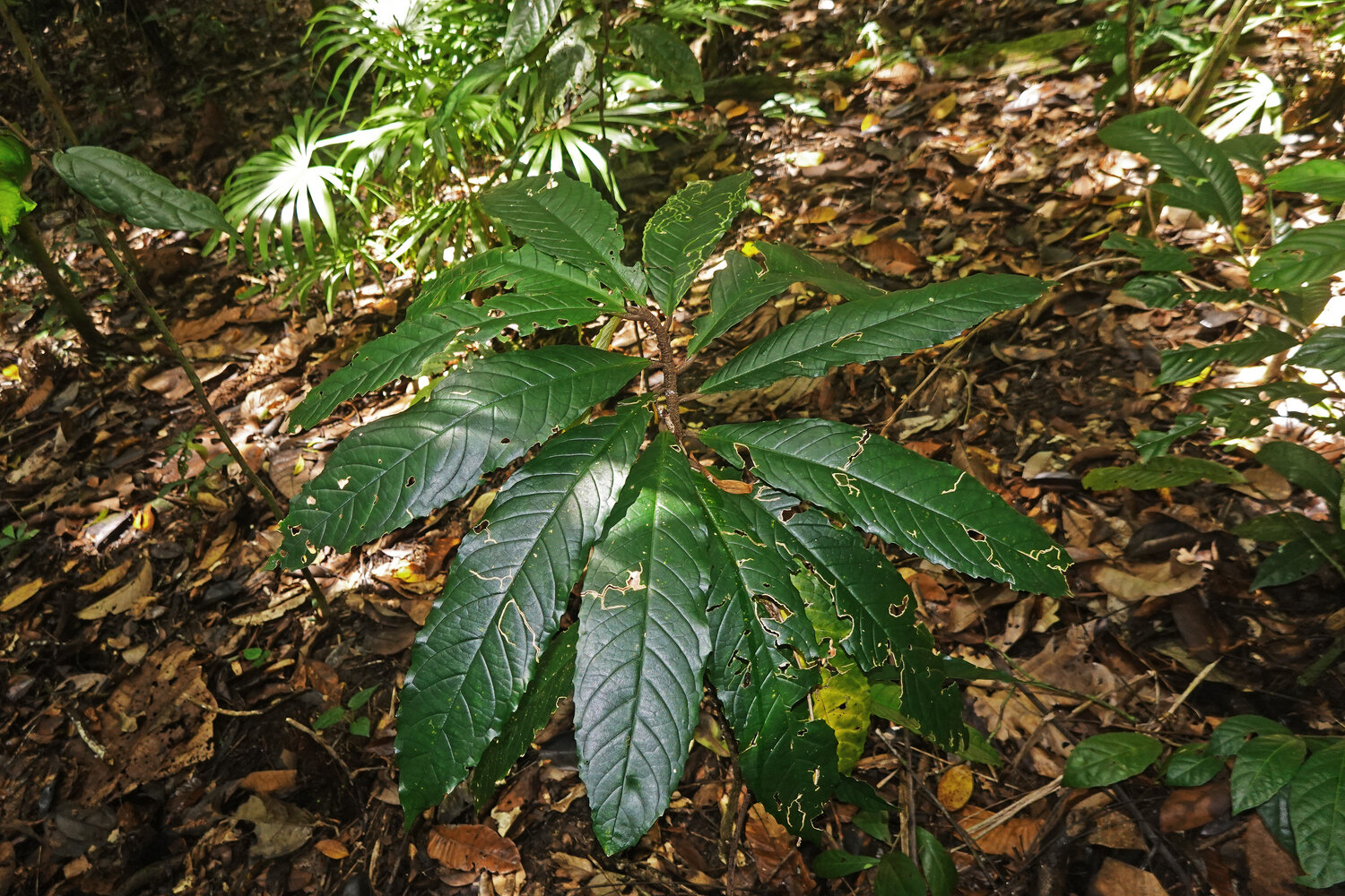 Cyrtandra longicarpa, leaves and fasciculate digitate fruits, Deramakot, Sabah, Borneo