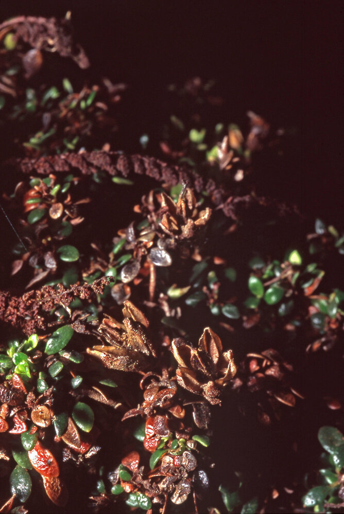 Rhododendron caespitosum, dry open capsules, Habbema lake, Wamena, West Papua