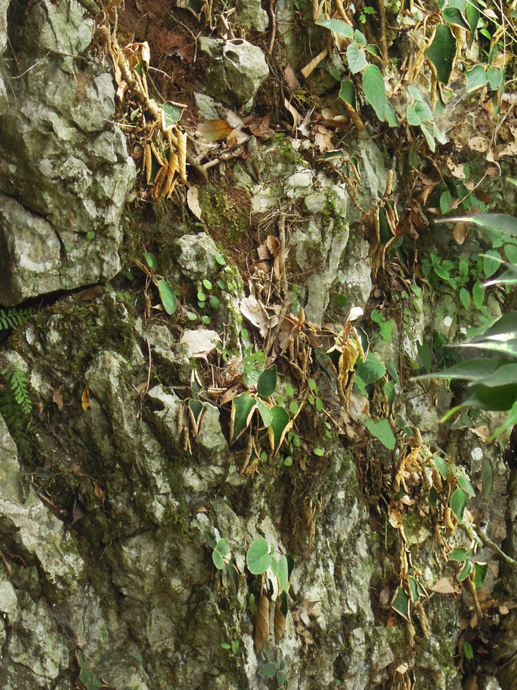Microsorum whiteheadii on its vertical limestone habitat, Payakumbuh, West Sumatra