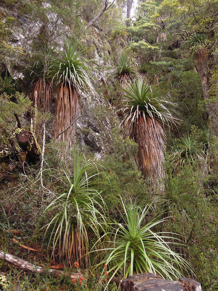 Richea pandanifolia, young individuals in forest understory, Lake Saint Clair, Cradle Mountain NP, Tasmania