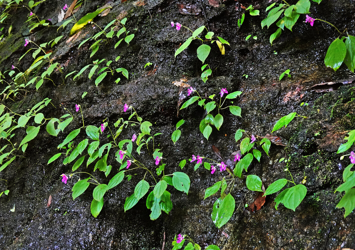 Impatiens appendiculata on a seeping rock, Kitulgala, Sri Lanka
