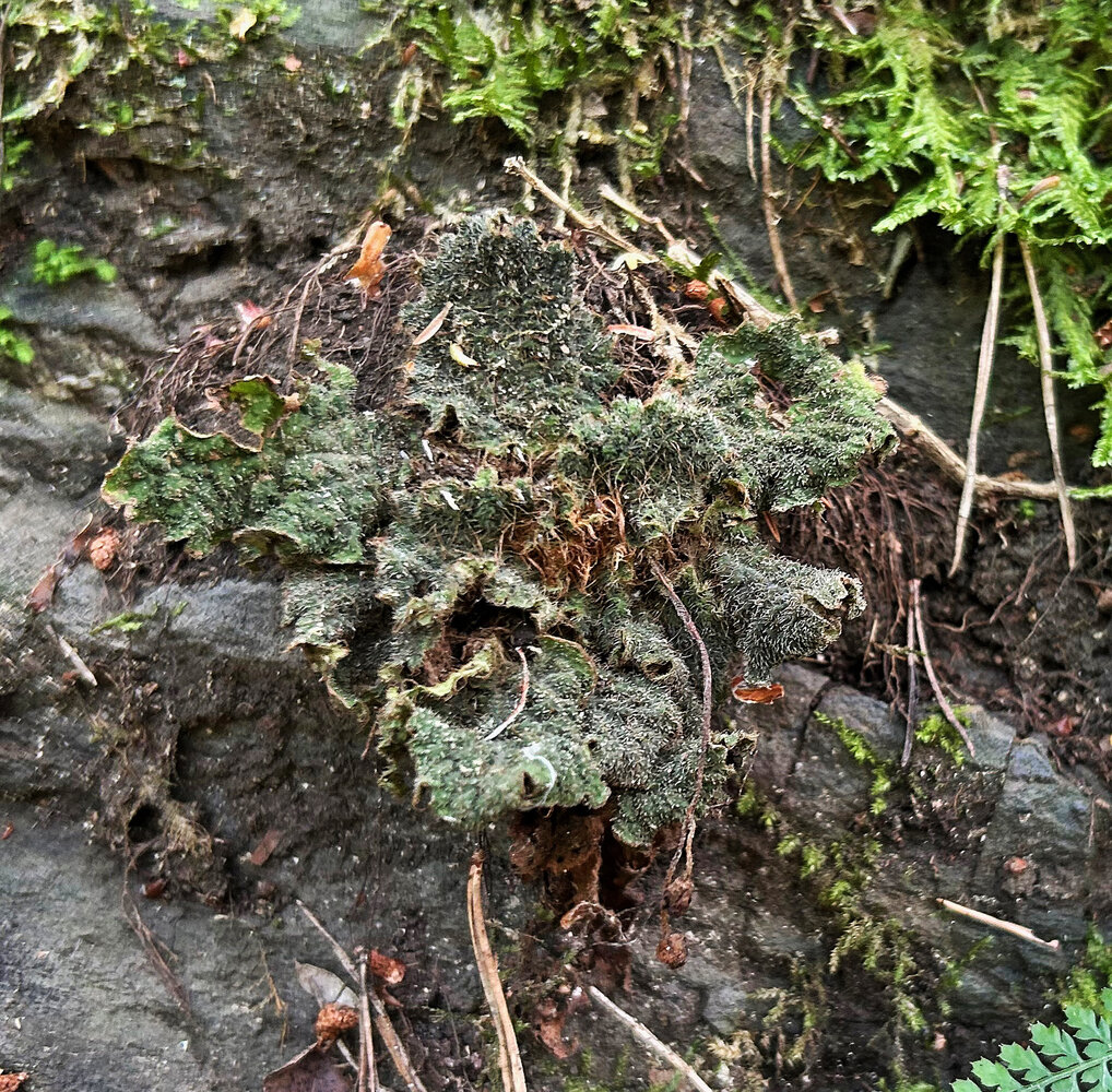 Ramonda myconi and Asplenium fontanum on a mossy shale rock substratum,  Andorra