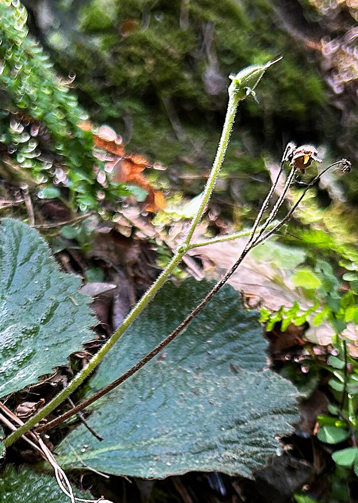 Loxocarpus incanus with a dense population of the tiny Argostemma pictum and some young Begonia sinuata, Penang Hill, Malaysia.
