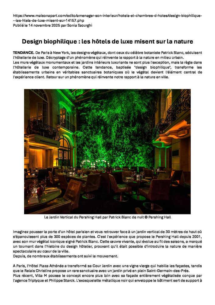 www.maisonapart.com Patrick Blanc 14 Novembre 2025