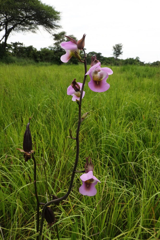 Eulophia cucullata, flowers and mature fruits, Katavi NP, Tanzania