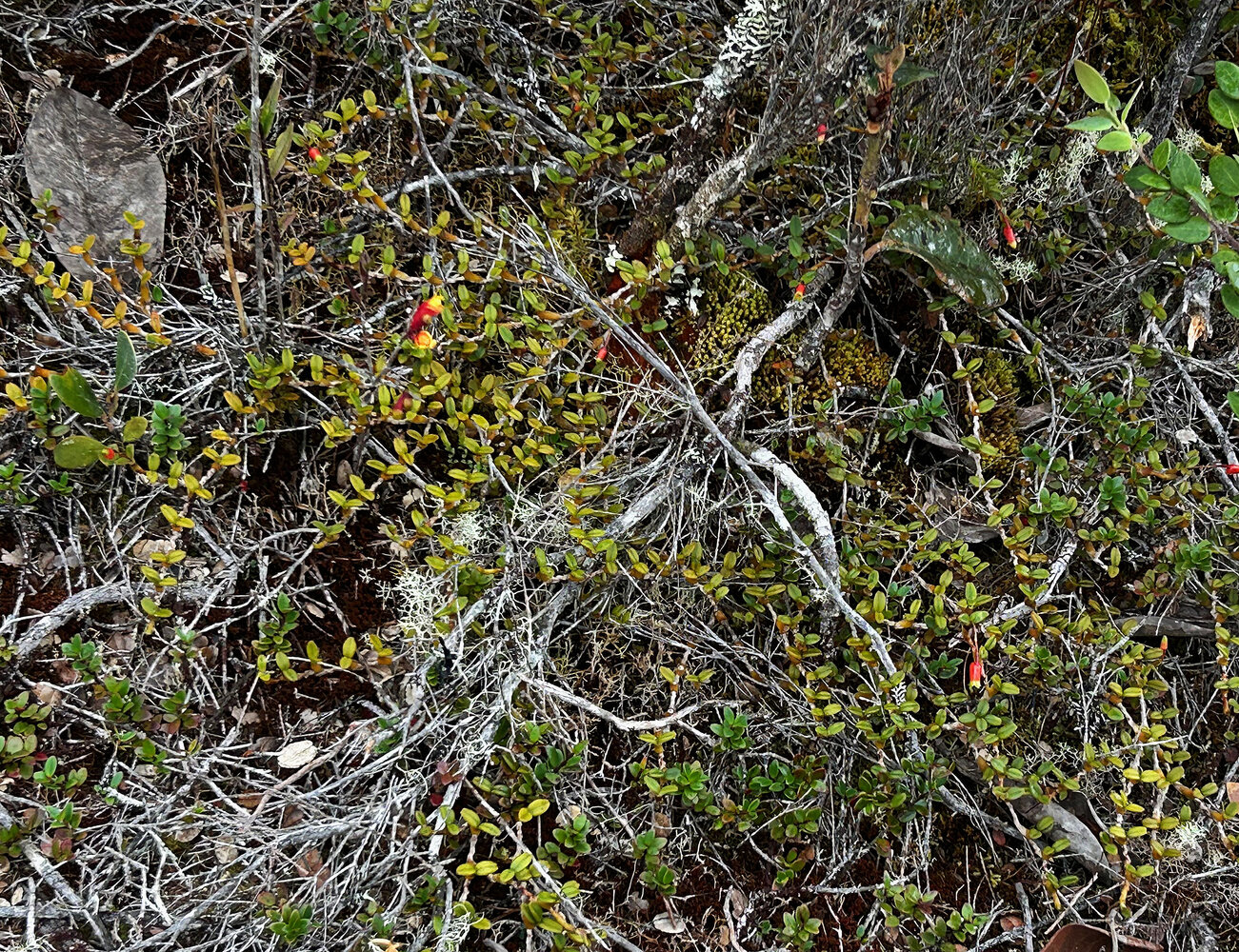 Vaccinium paradisearum flowering at forest edge, Anggi Lakes, 2300 m asl, Arfak Mts, West Papua