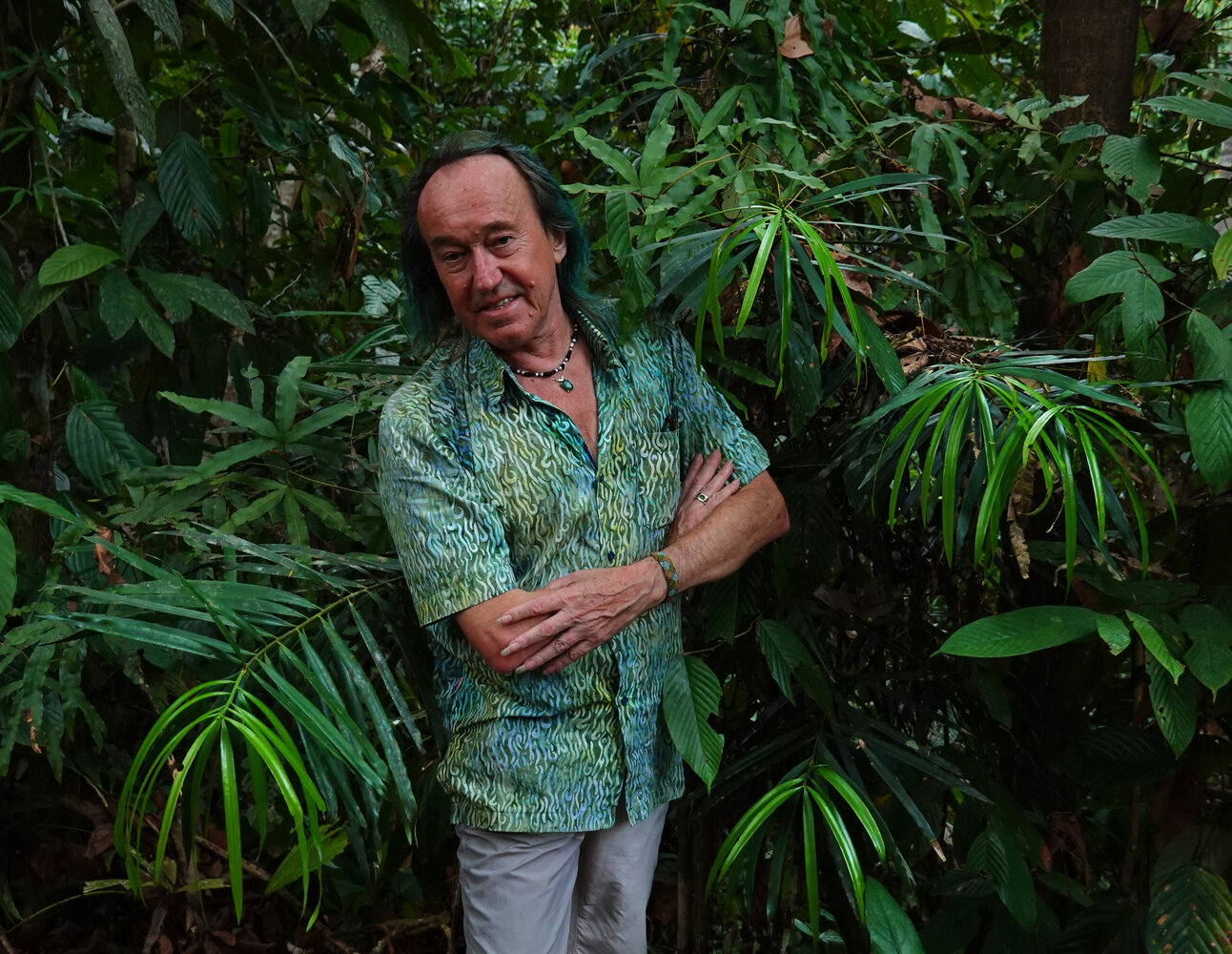 Patrick Blanc and Podocarpus neriifolius, Sepilok FR, Sabah, Borneo, July 2022