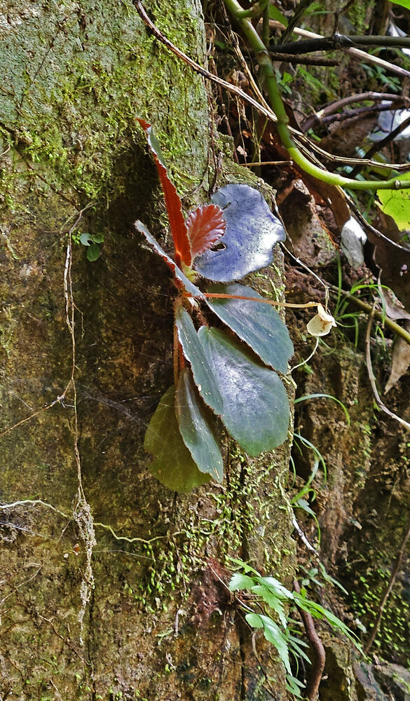 Begonia blancii, blackish and green forms, Bulalacao Falls, El Nido, Palawan, Feb. 2025, photo R. Dupont