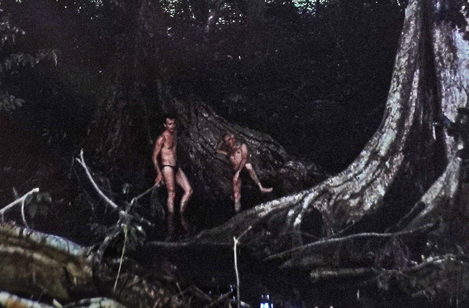 Patrick Blanc and Philippe Niez in a swamp forest dominated by Pterocarpus officinalis, Guadeloupe, Feb. 1986