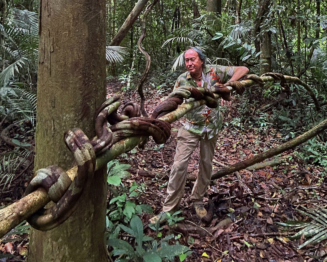 Patrick Blanc and a big liana, Taman Negara, Malaysia, Sept. 2025