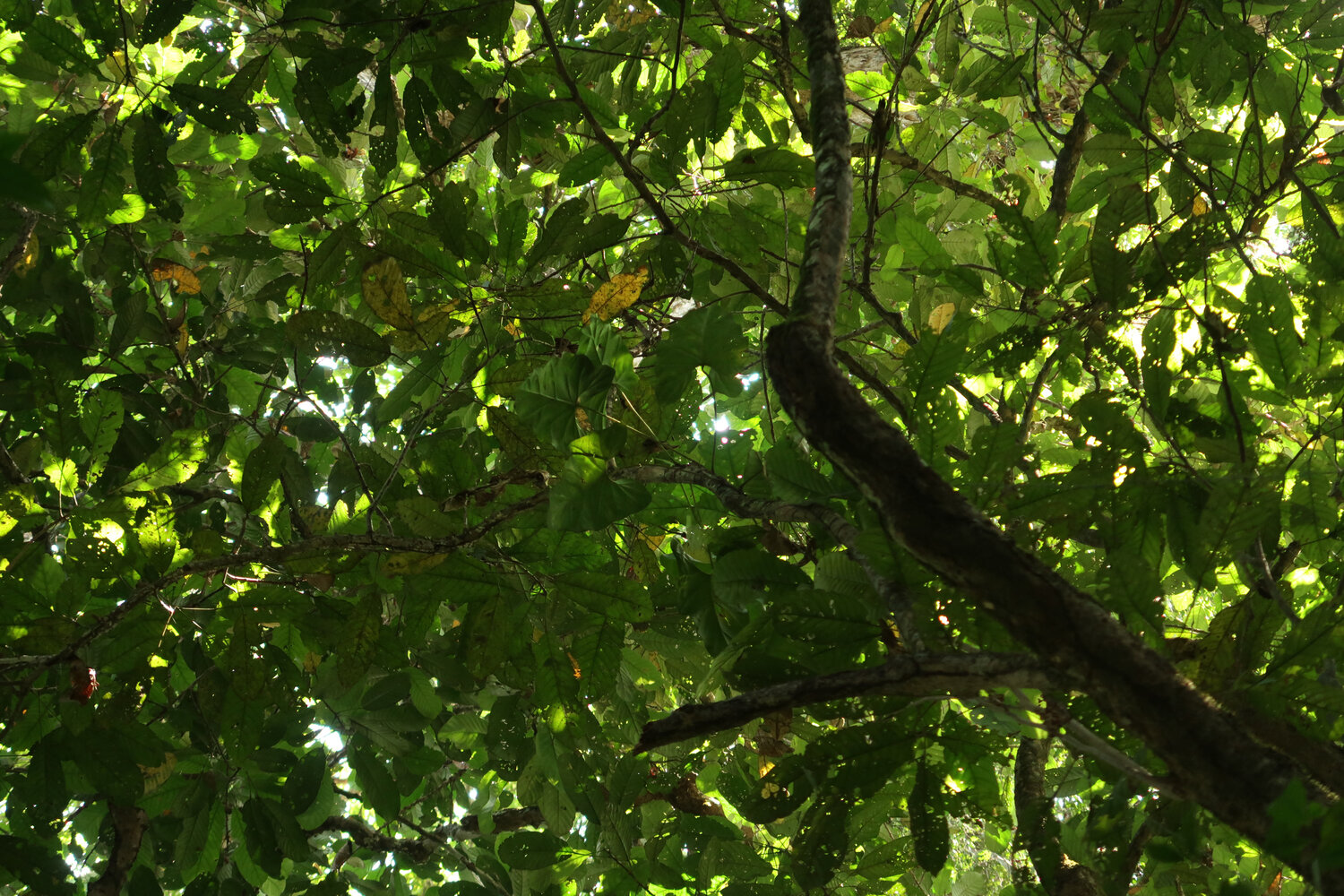 Cercestis blancii, almost impossible to detect from forest floor while it climbs along the horizontal branches of small forest trees, Ebodjé, Campo, Cameroon