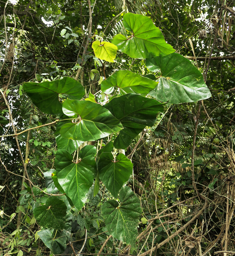 Cercestis blancii, young individual climbing along a very thin treelet stem, Ebodjé, Campo, Cameroon