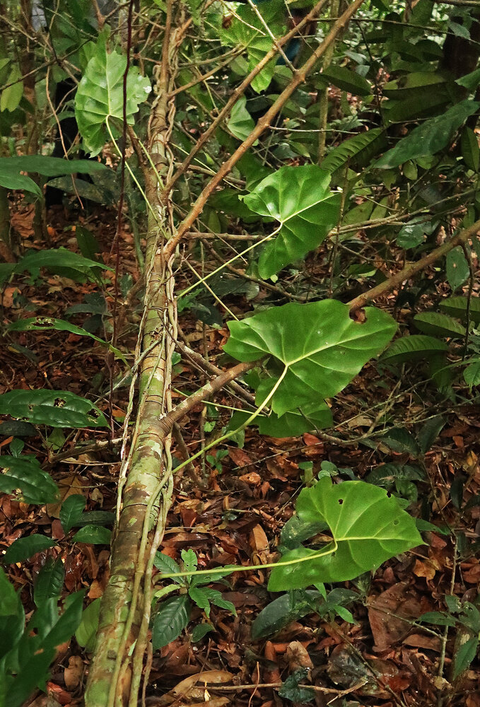 Cercestis blancii, stem and leaves while it was climbing along a Garcinia trunk, Ebodjé, Campo, Cameroon