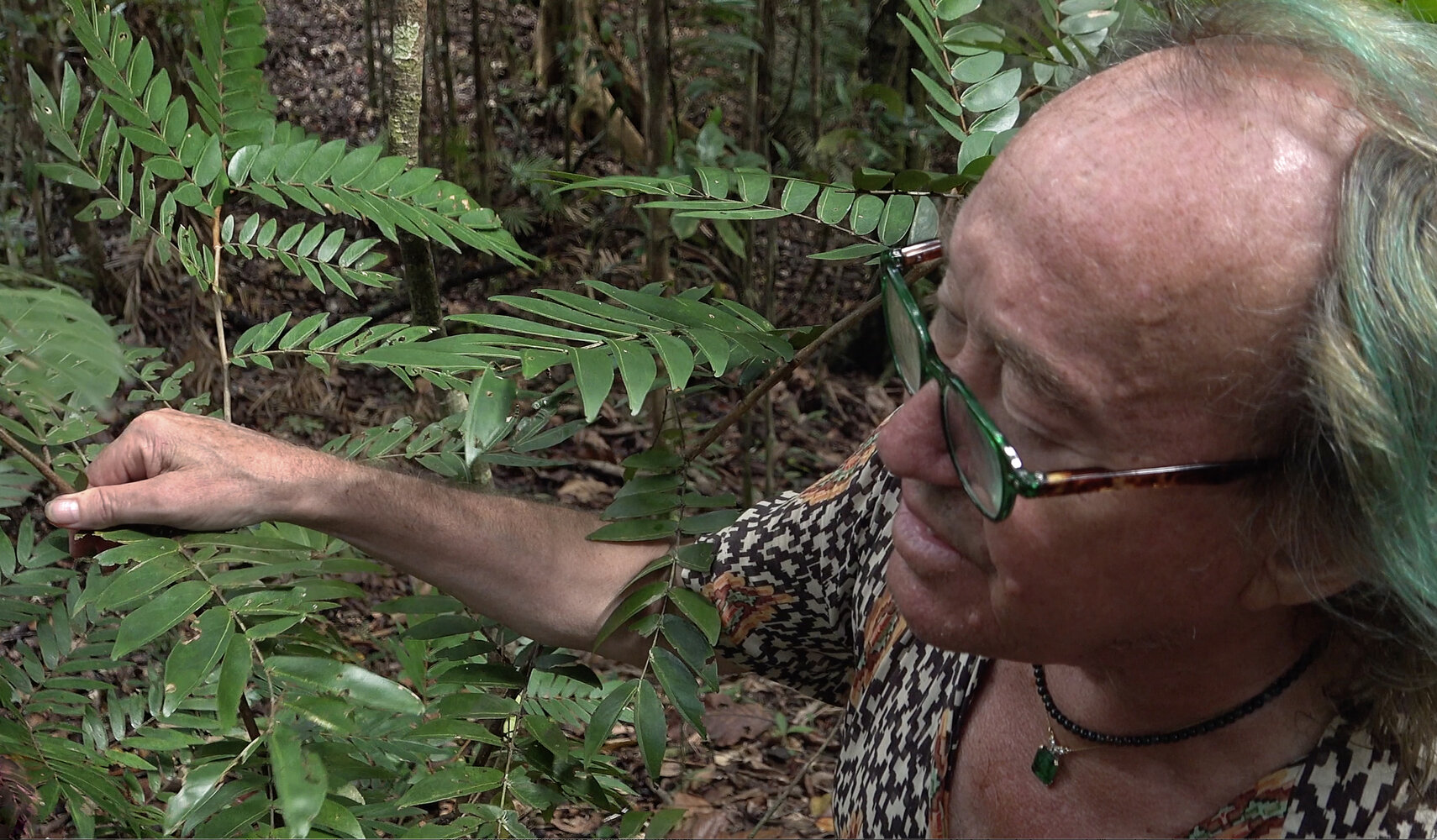 Patrick Blanc observing the asymmetric leaflets of Cynometra plurijuga, Malagufuk, Sorong, Papua, May 2025