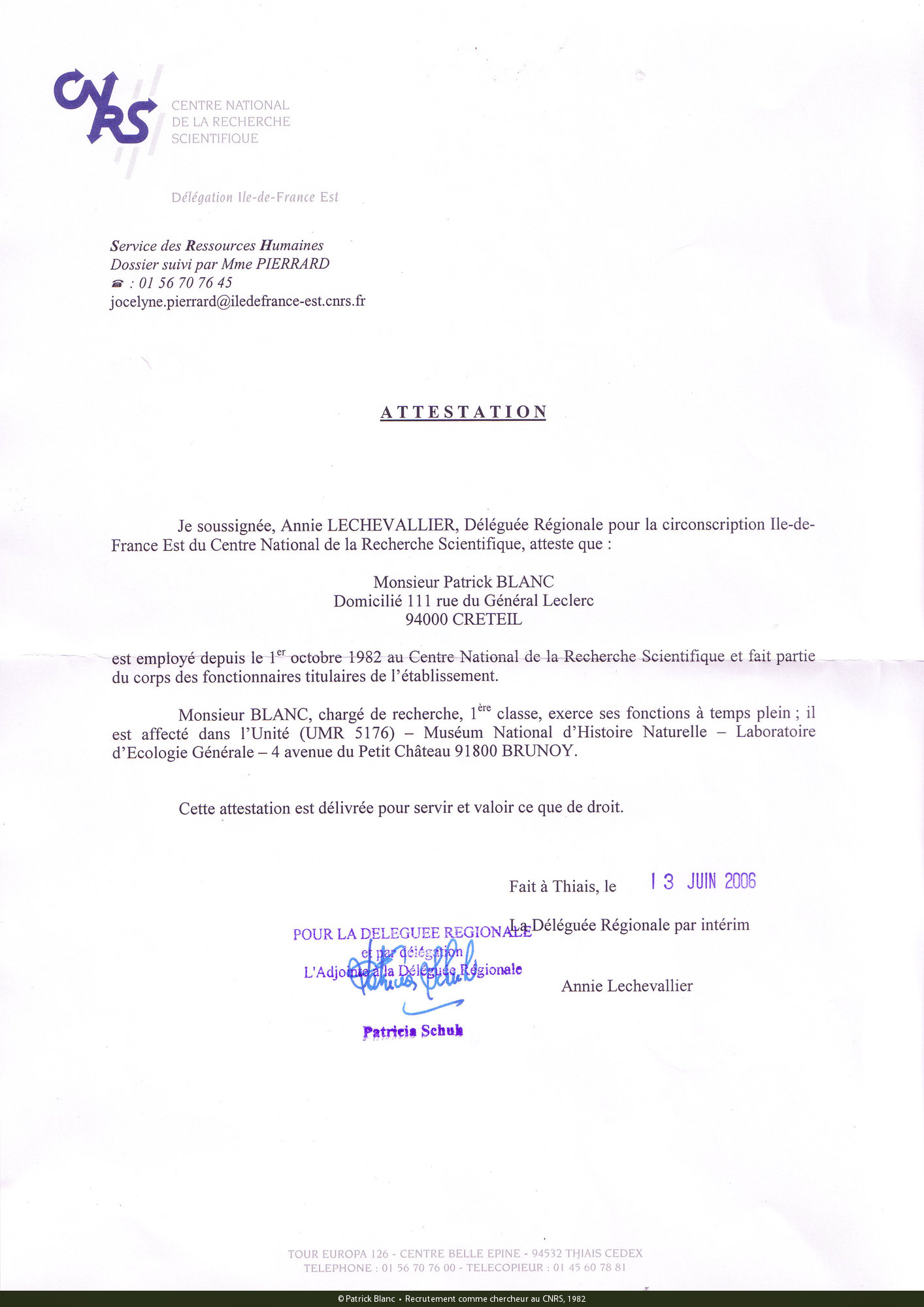 Hired as a scientist researcher, CNRS, 1982