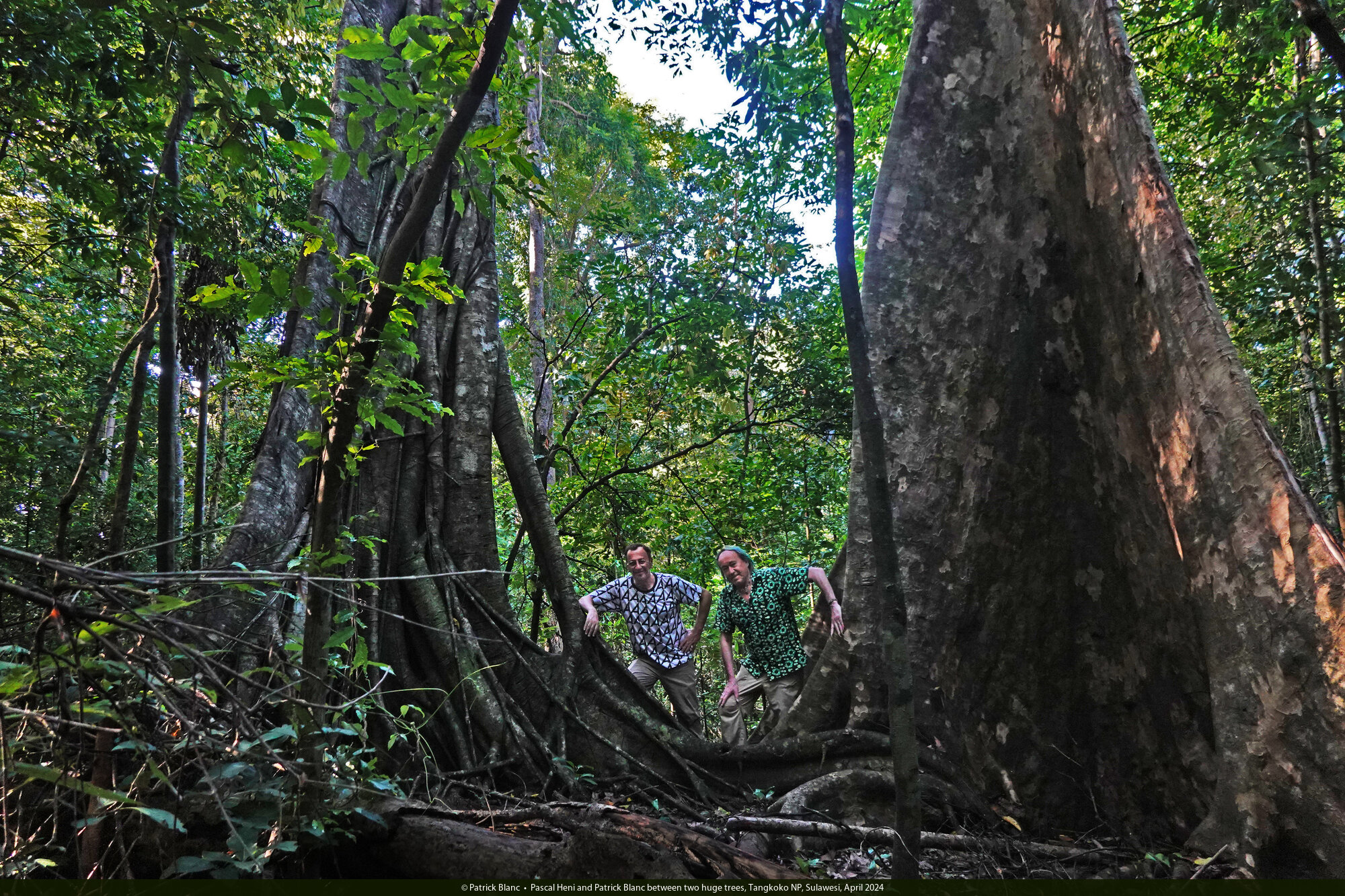 Pascal Heni and Patrick Blanc between two huge trees, Tangkoko NP, Sulawesi, April 2024