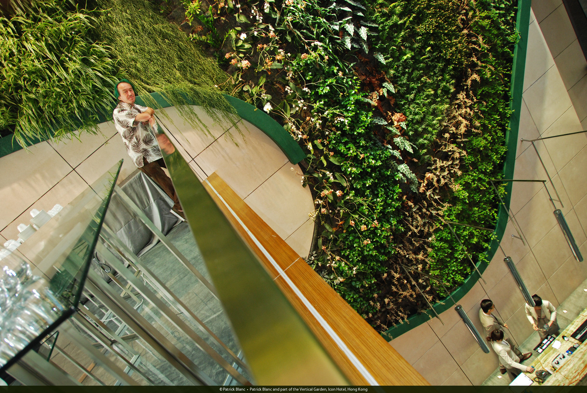 Patrick Blanc and part of the Vertical Garden, Icon Hotel, Hong Kong