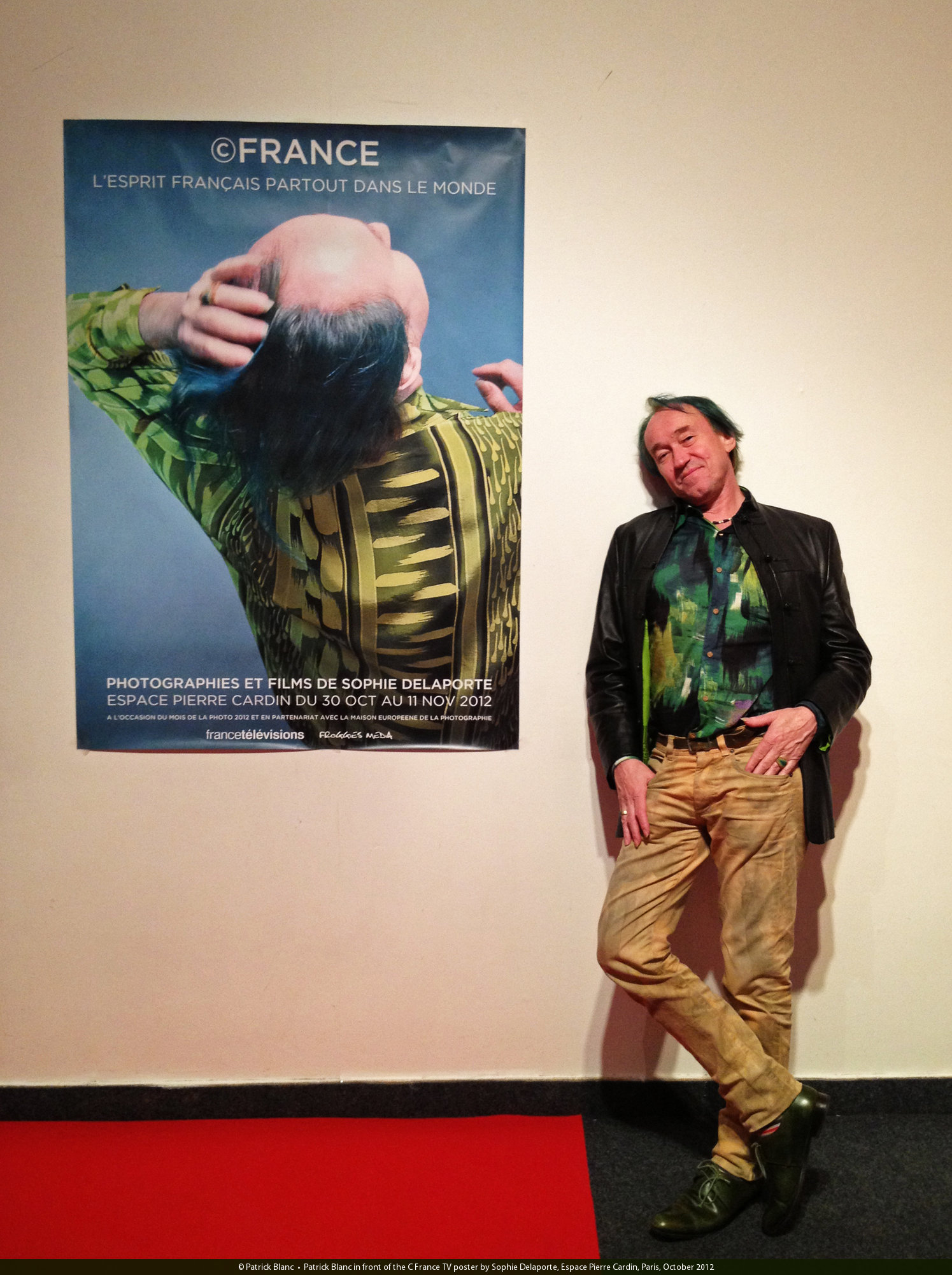 Patrick Blanc in front of the C France TV poster by Sophie Delaporte, Espace Pierre Cardin, Paris, October 2012