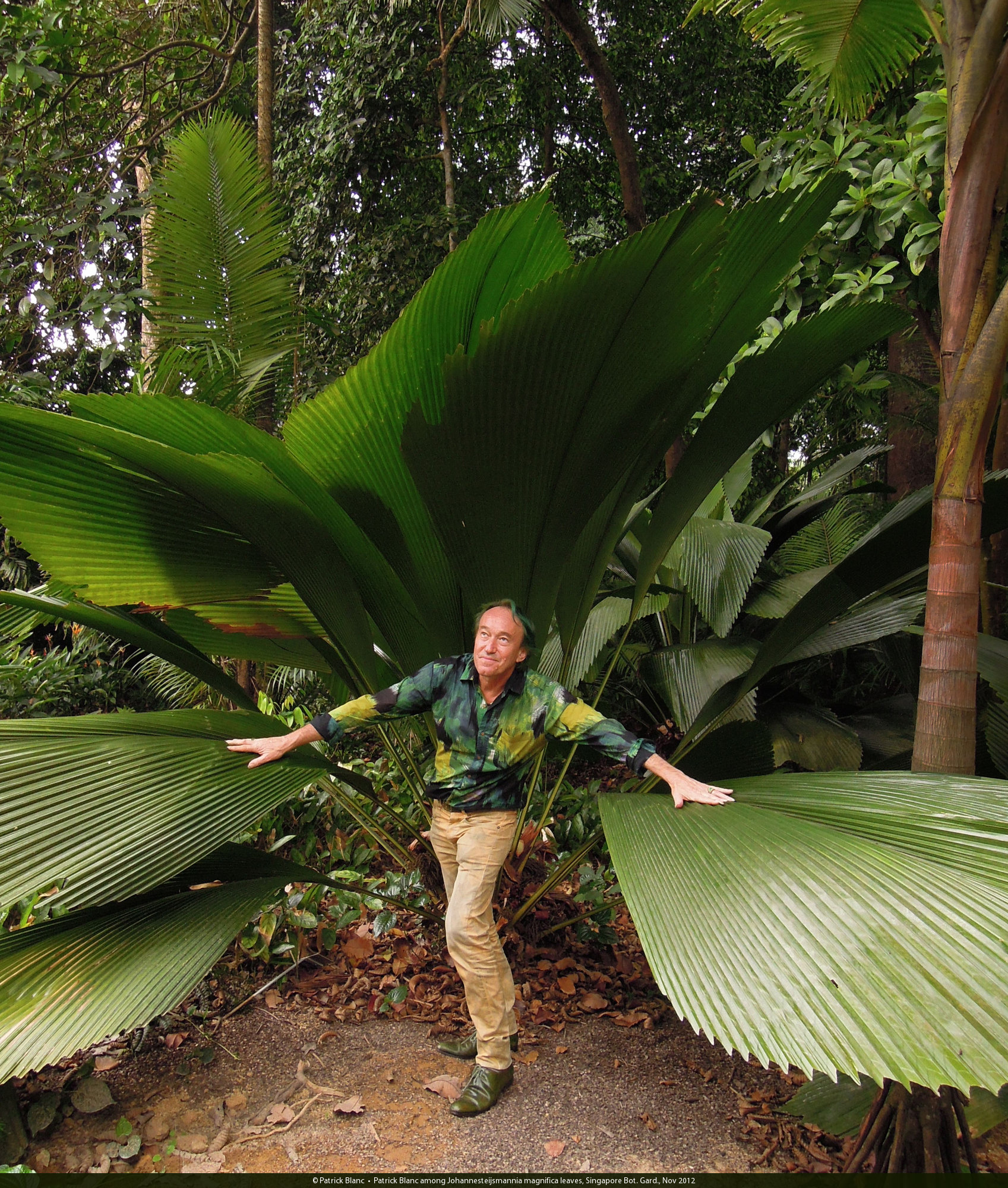 Patrick Blanc among Johannesteijsmannia magnifica leaves, Singapore Bot. Gard., Nov 2012