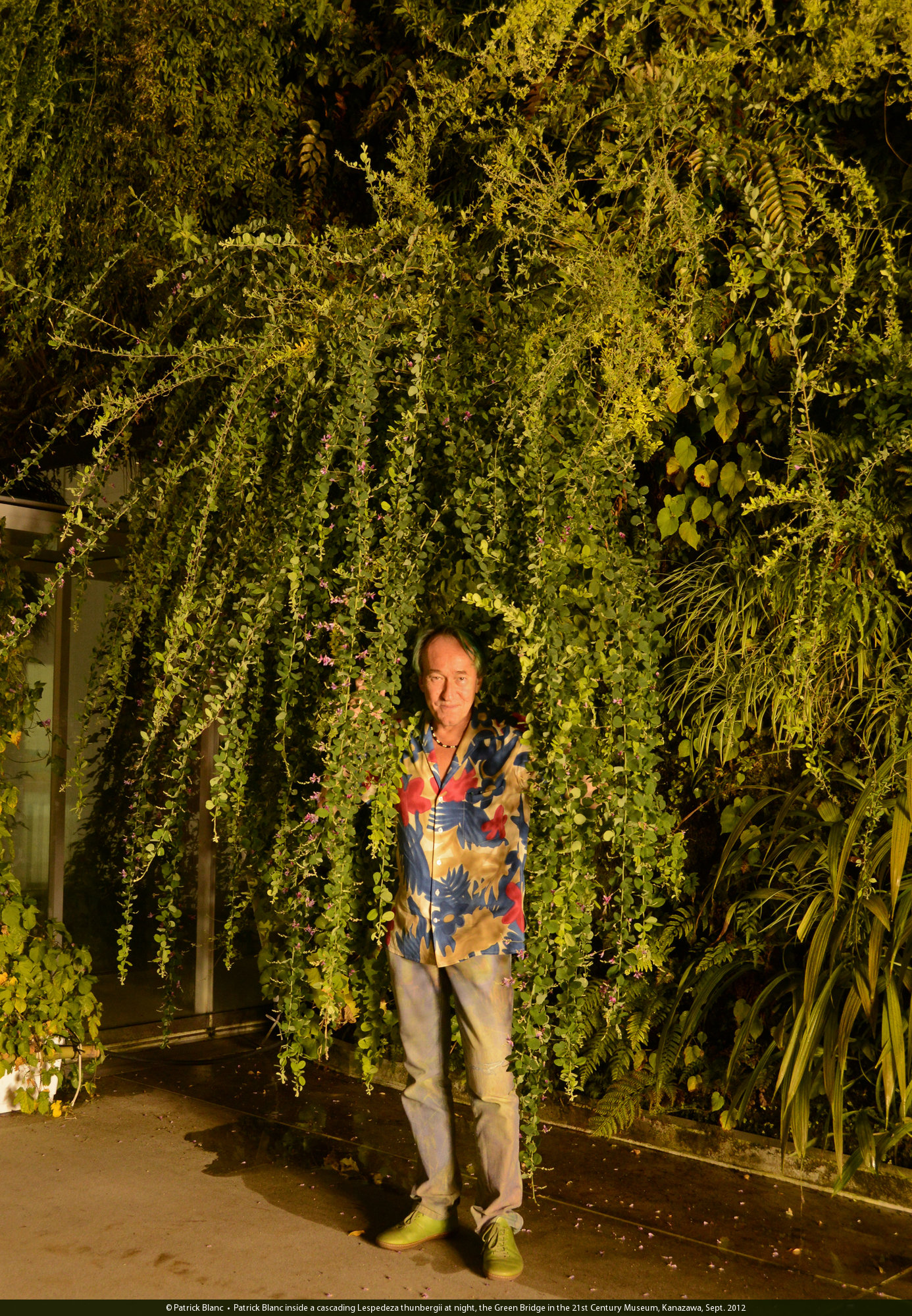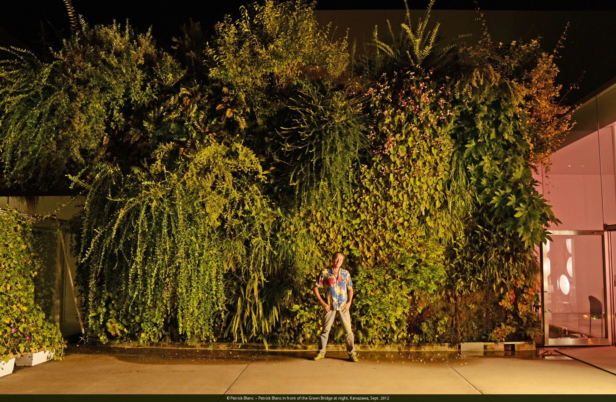 Patrick Blanc in front of the Green Bridge at night, Kanazawa, Sept. 2012
