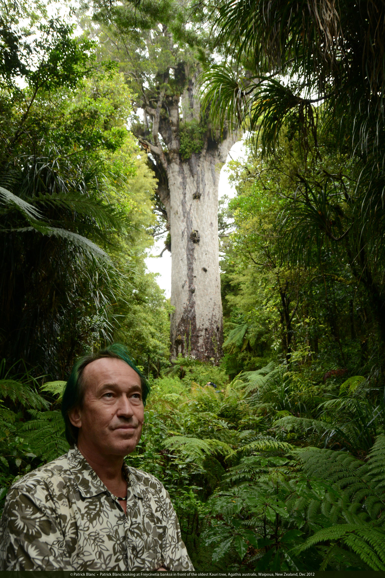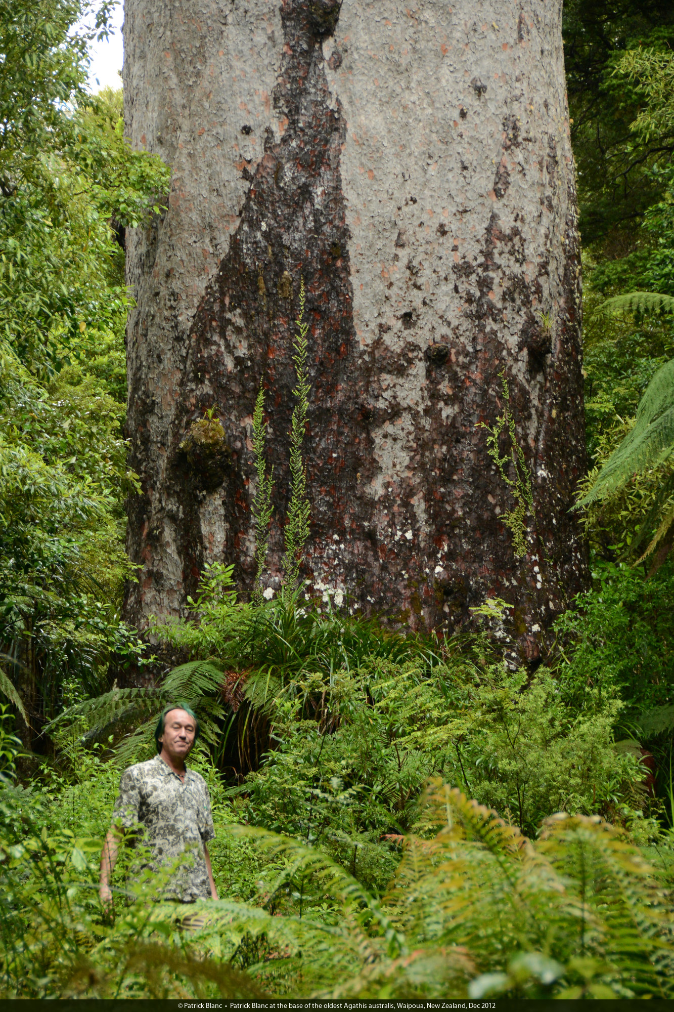Patrick Blanc under the Father of the Forest, Agathis australis, Waipoua, New Zealand, Dec 2012
