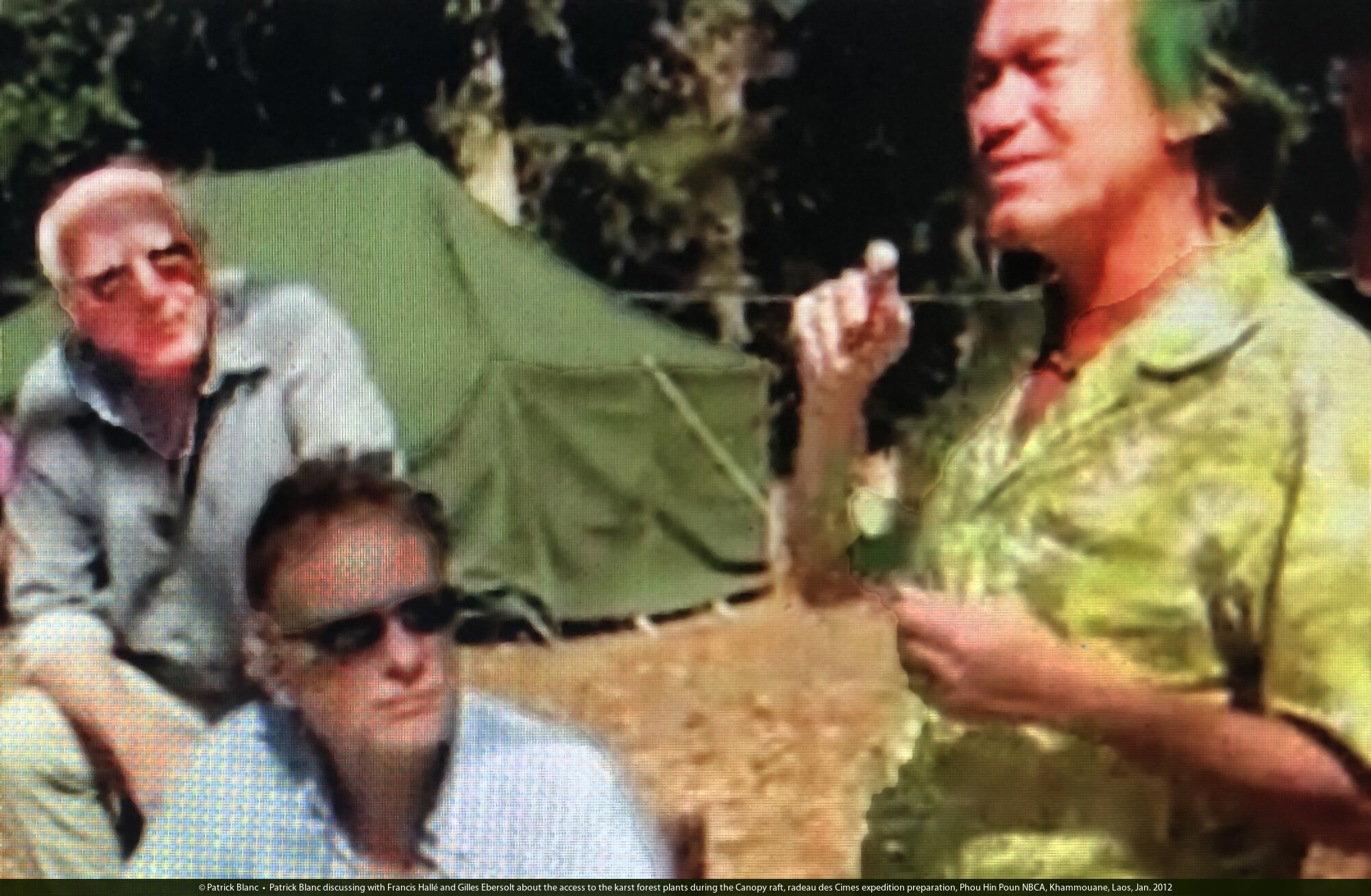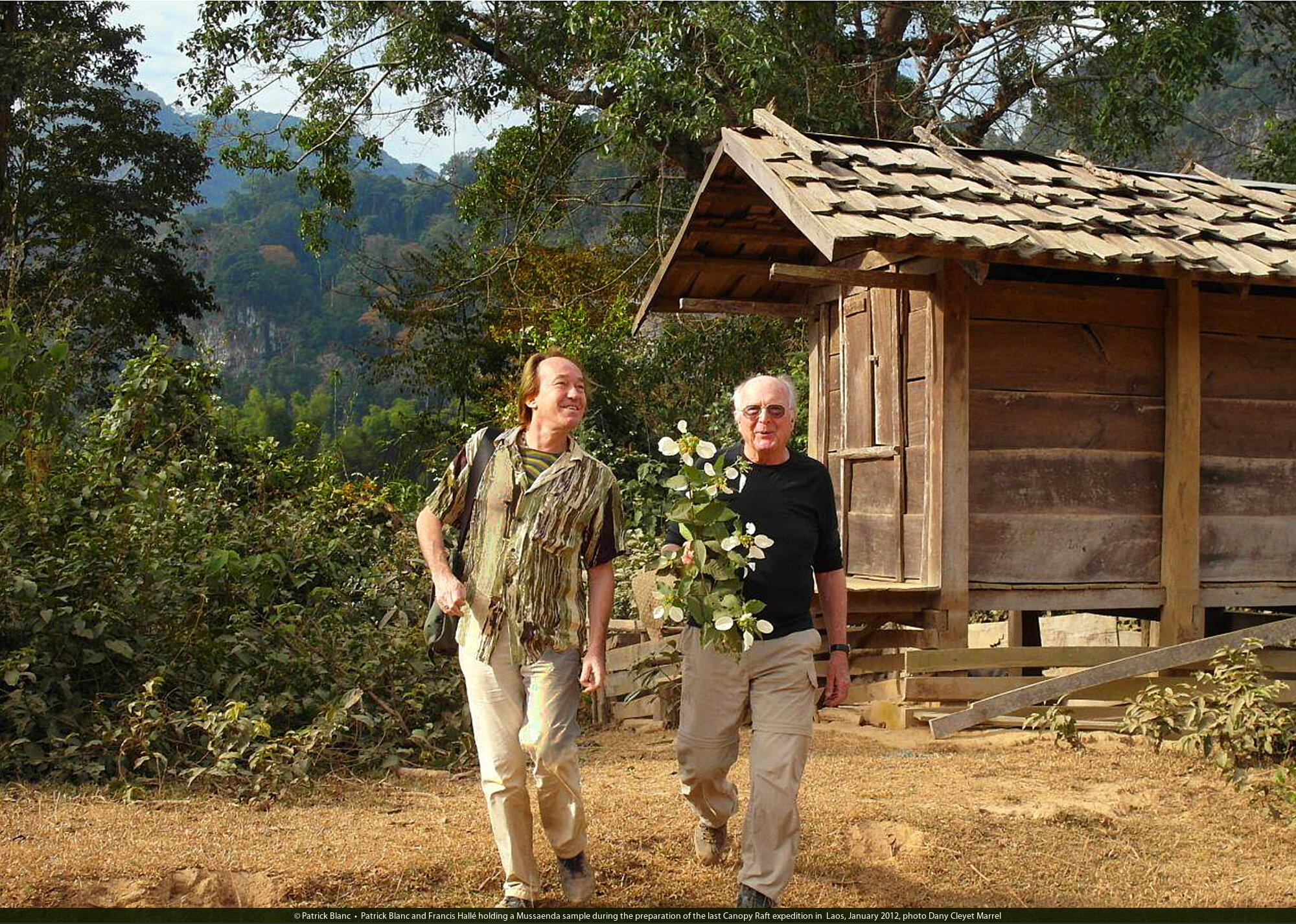 Patrick Blanc and Francis Hallé holding a Mussaenda sample during the preparation of the last Canopy Raft expedition in Laos, January 2012, photo Dany Cleyet Marrel
