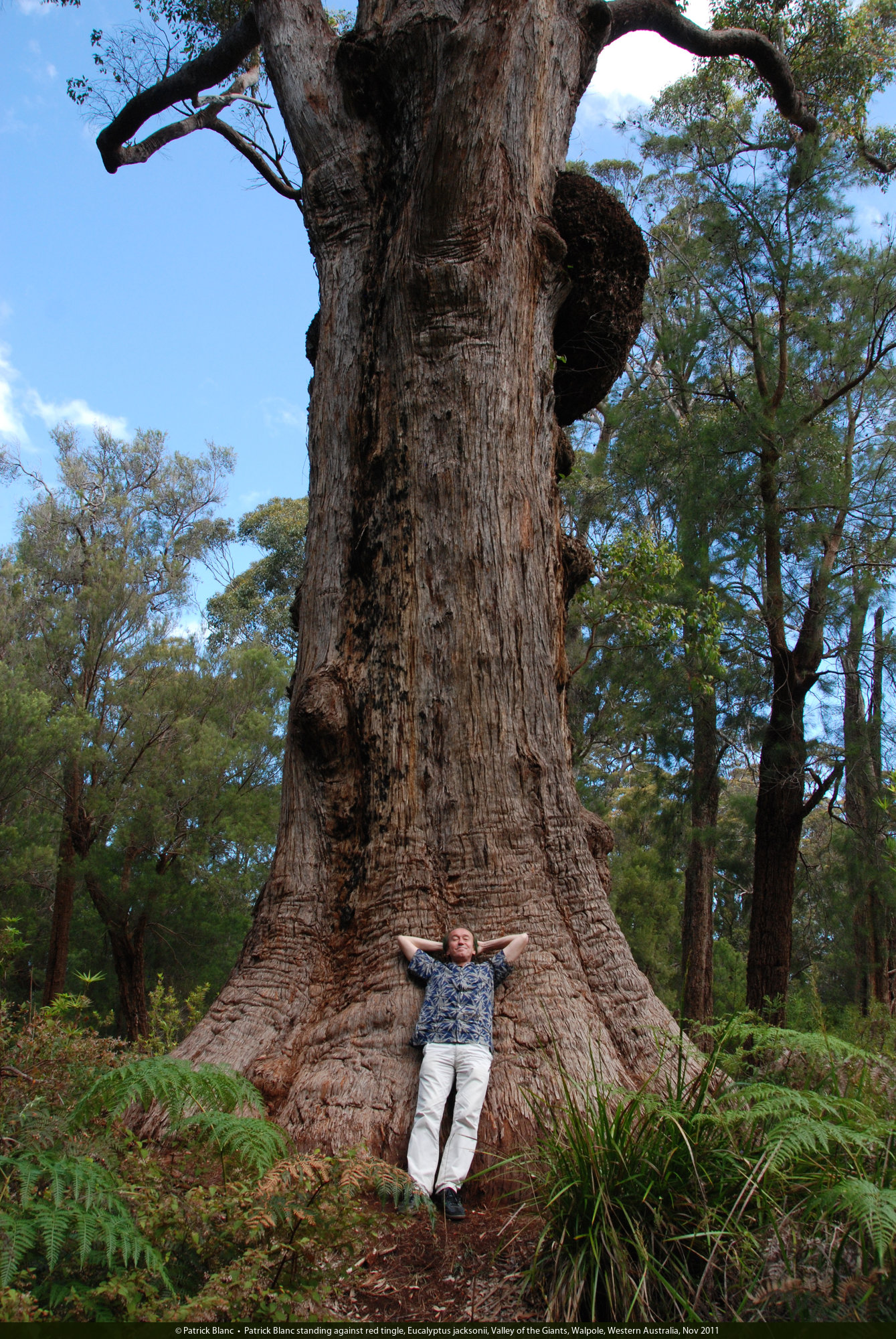 Patrick Blanc standing against red tingle, Eucalyptus jacksonii, Valley of the Giants, Walpole, Western Australia, Nov 2011