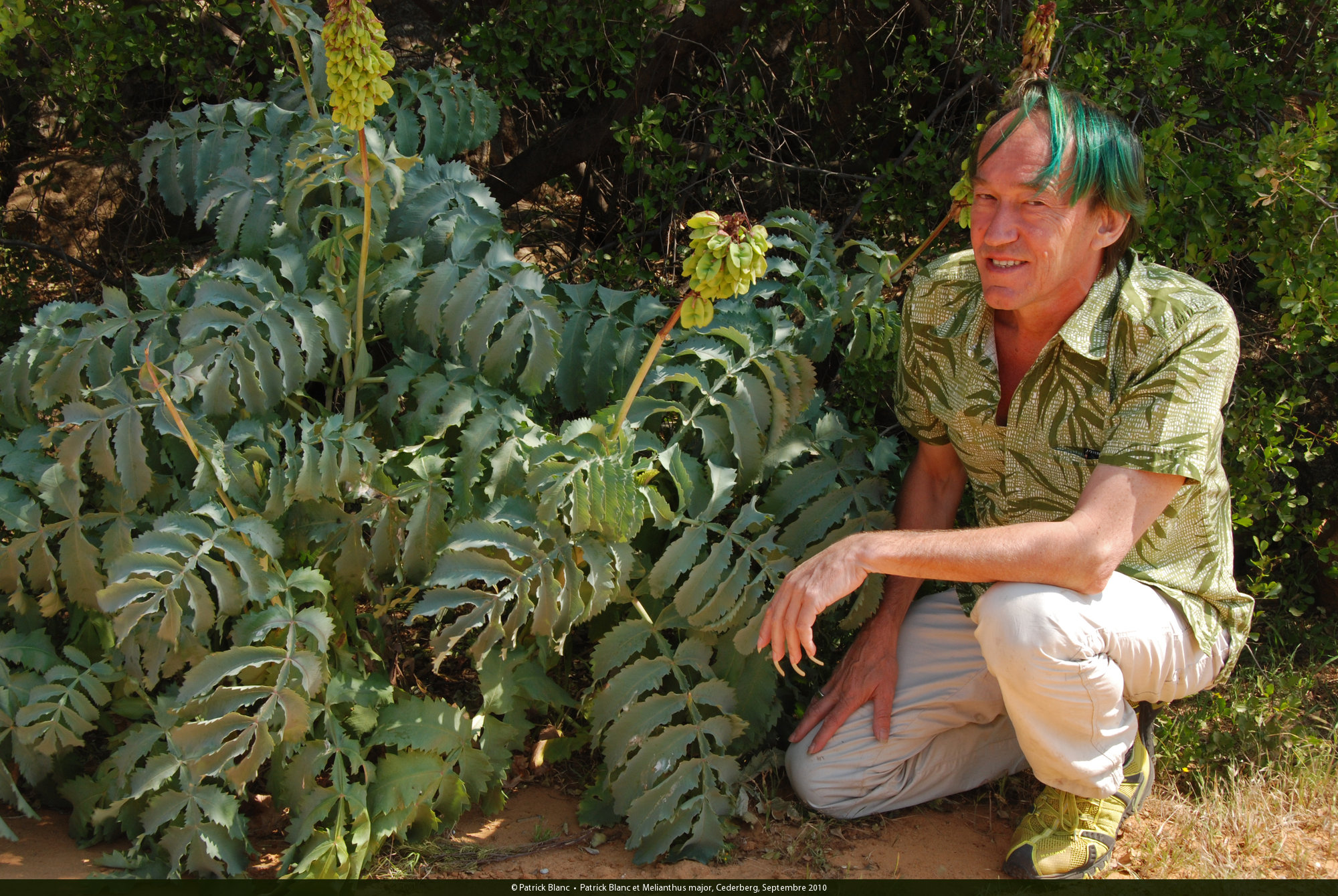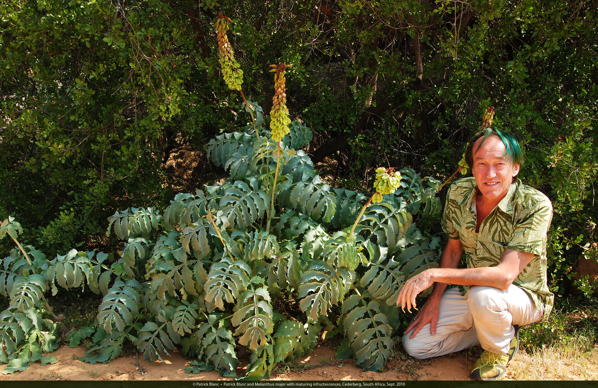Patrick Blanc and Melianthus major with maturing infructescences, Cederberg, South Africa, Sept. 2010