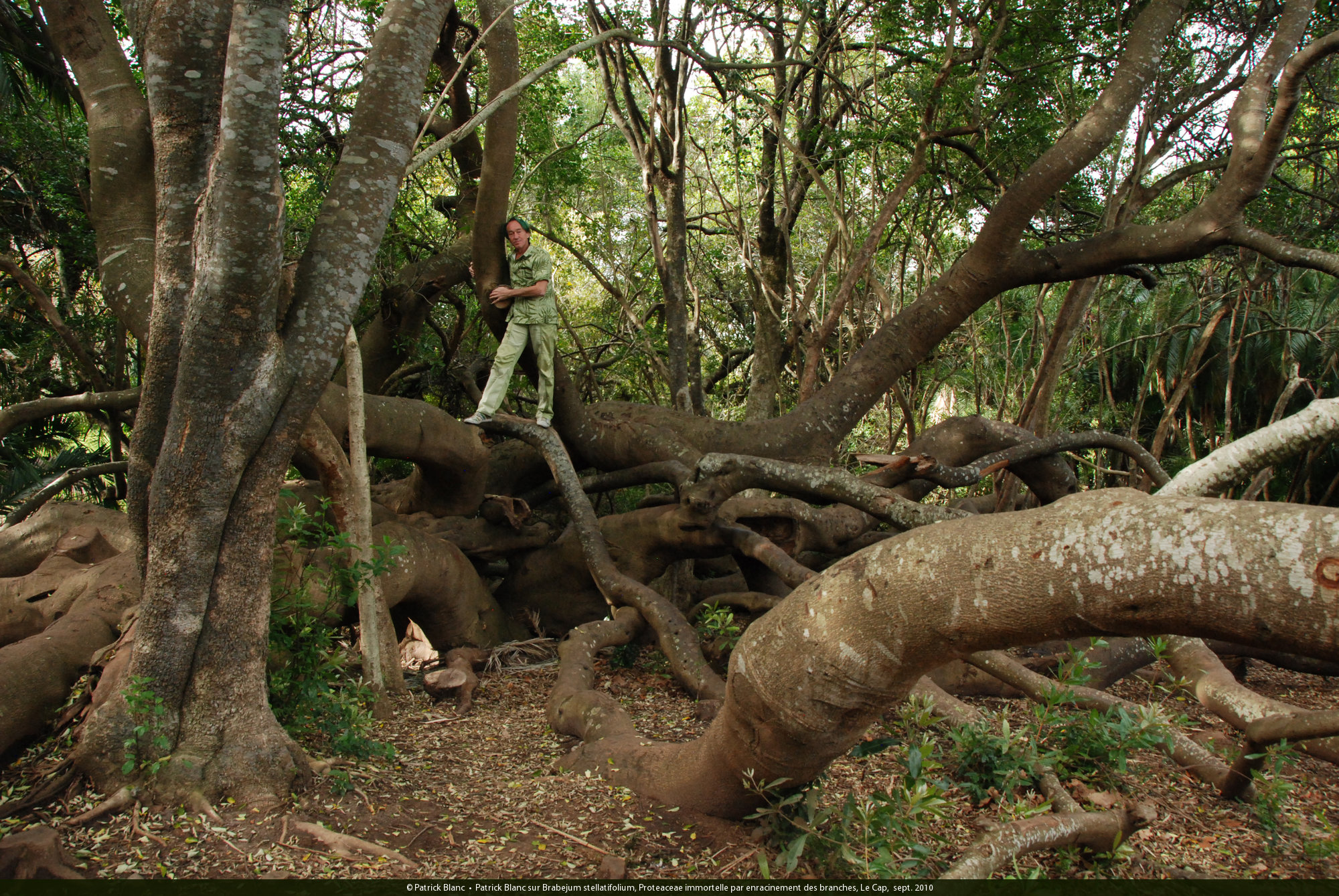 Patrick Blanc on Brabejum stellatifolium, Ever-lasting Proteaceae thanks to branches rooting, Cape Town, Sept. 10