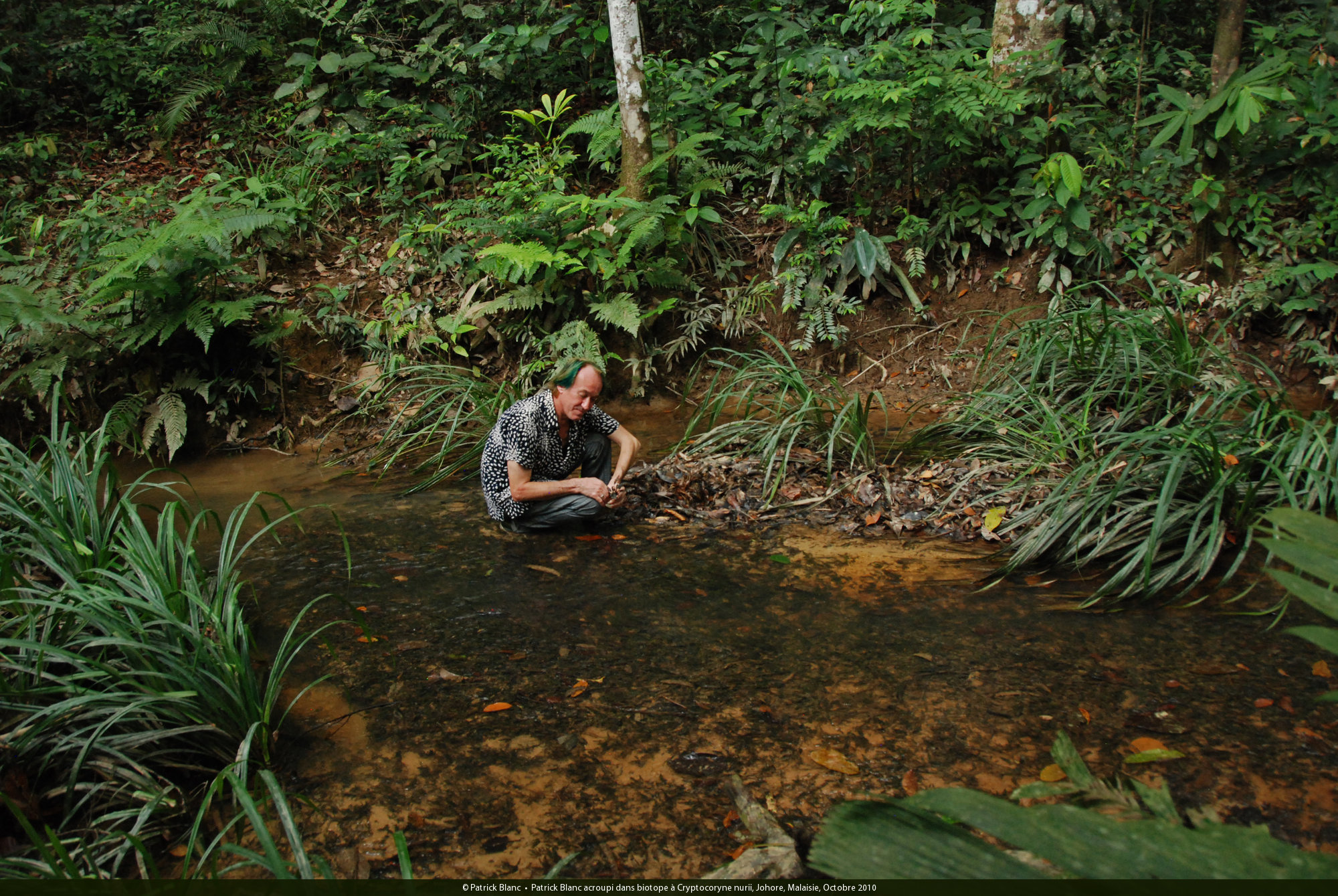 Patrick Blanc standing in a Cryptocoryne nurii river, Johore, Octobre 2010
