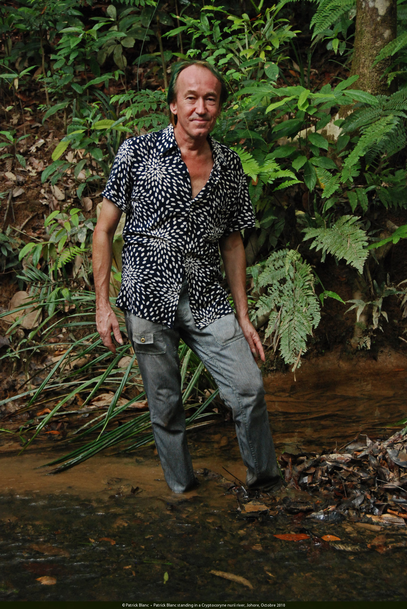 Patrick Blanc with Cryptocoryne nurii, Johor, Malaysia, Oct. 2010