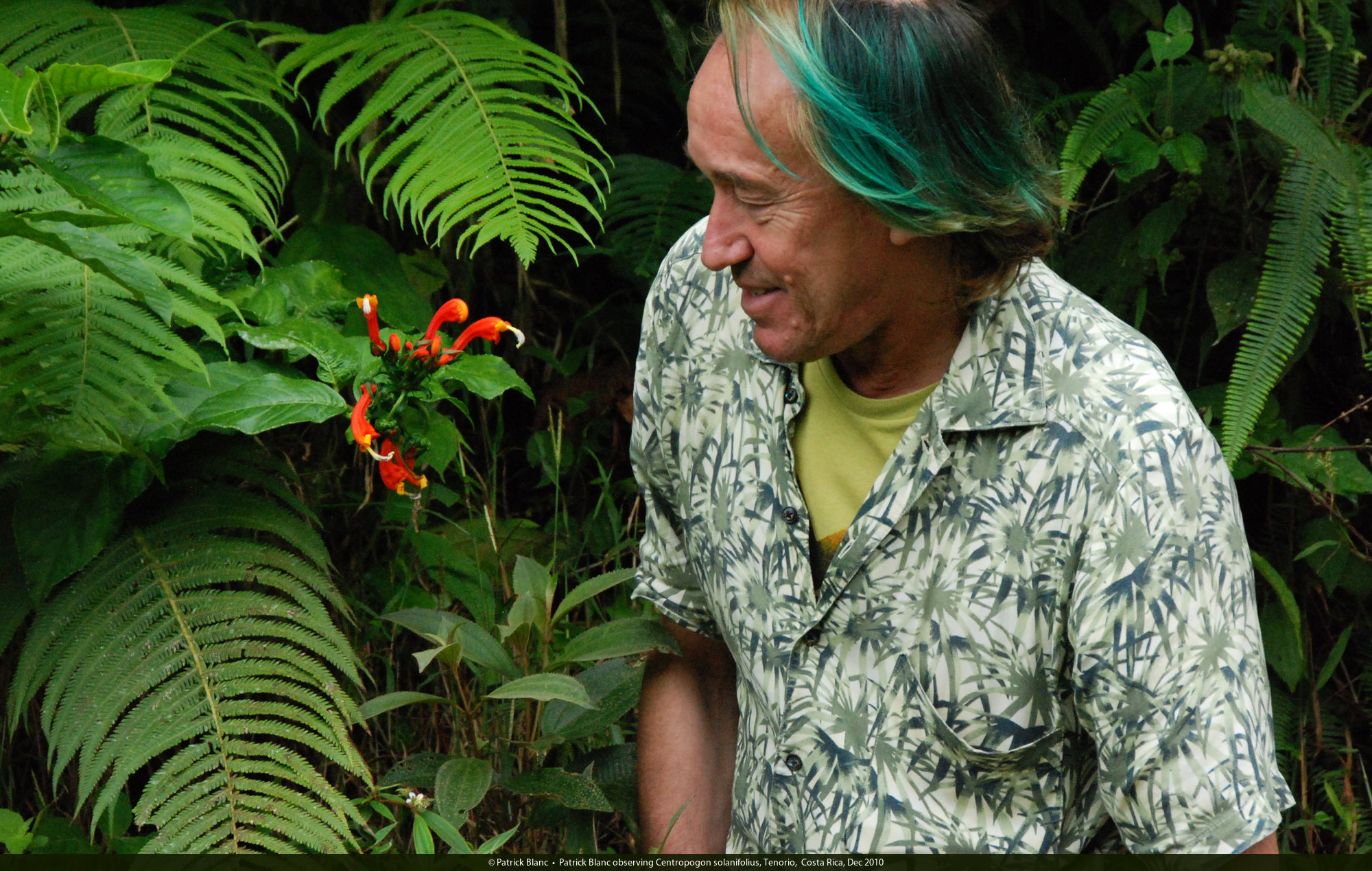 Patrick Blanc observing Centropogon solanifolius, Tenorio, Costa Rica, Dec 2010