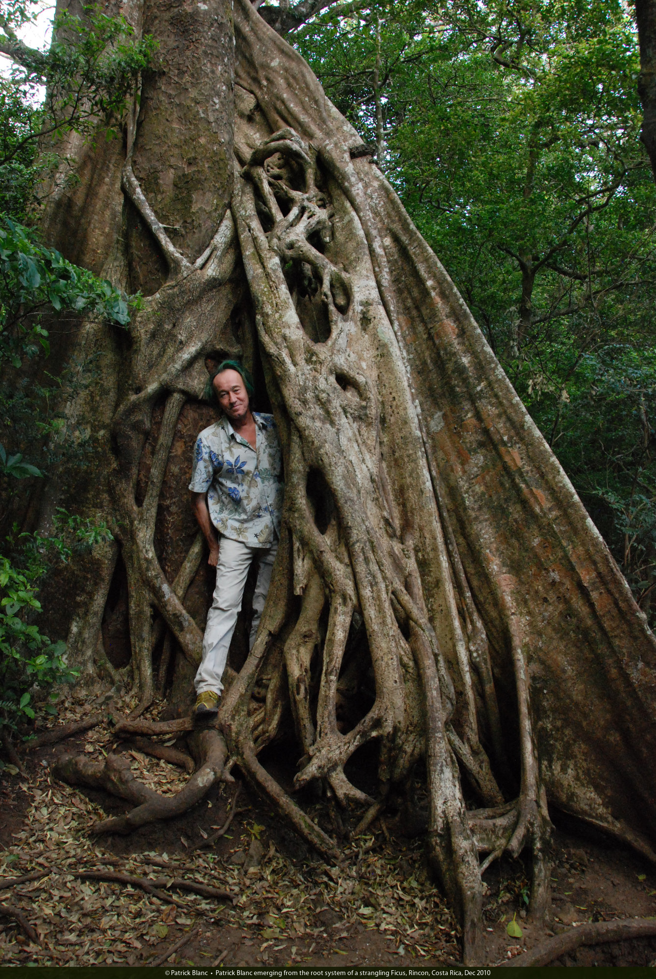 Patrick Blanc emerging from the root system of a strangling Ficus, Rincon, Costa Rica, Dec 2010