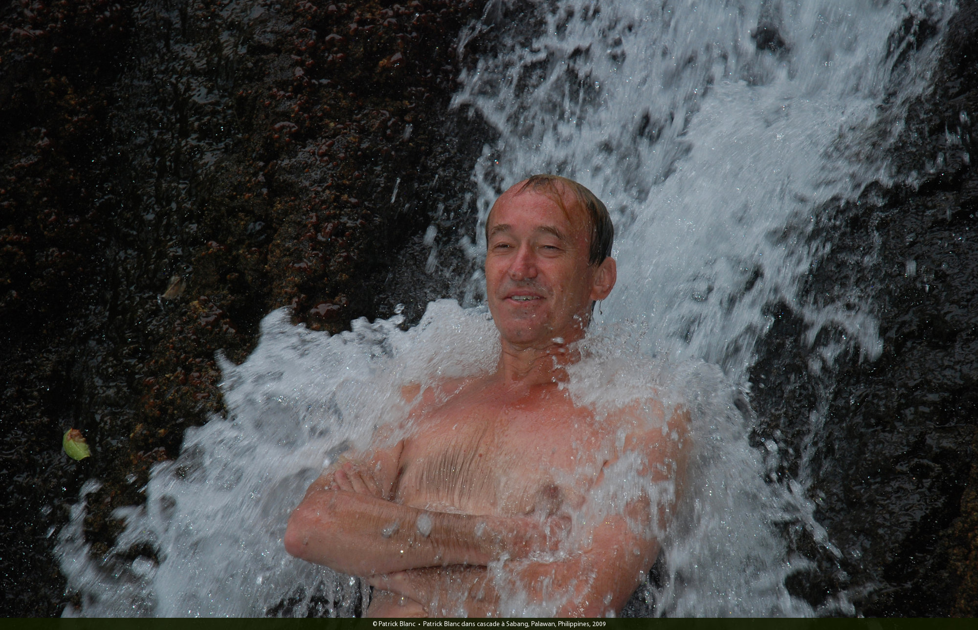Patrick Blanc in a waterfall, Sabang, Palawan, Philippines, 2009