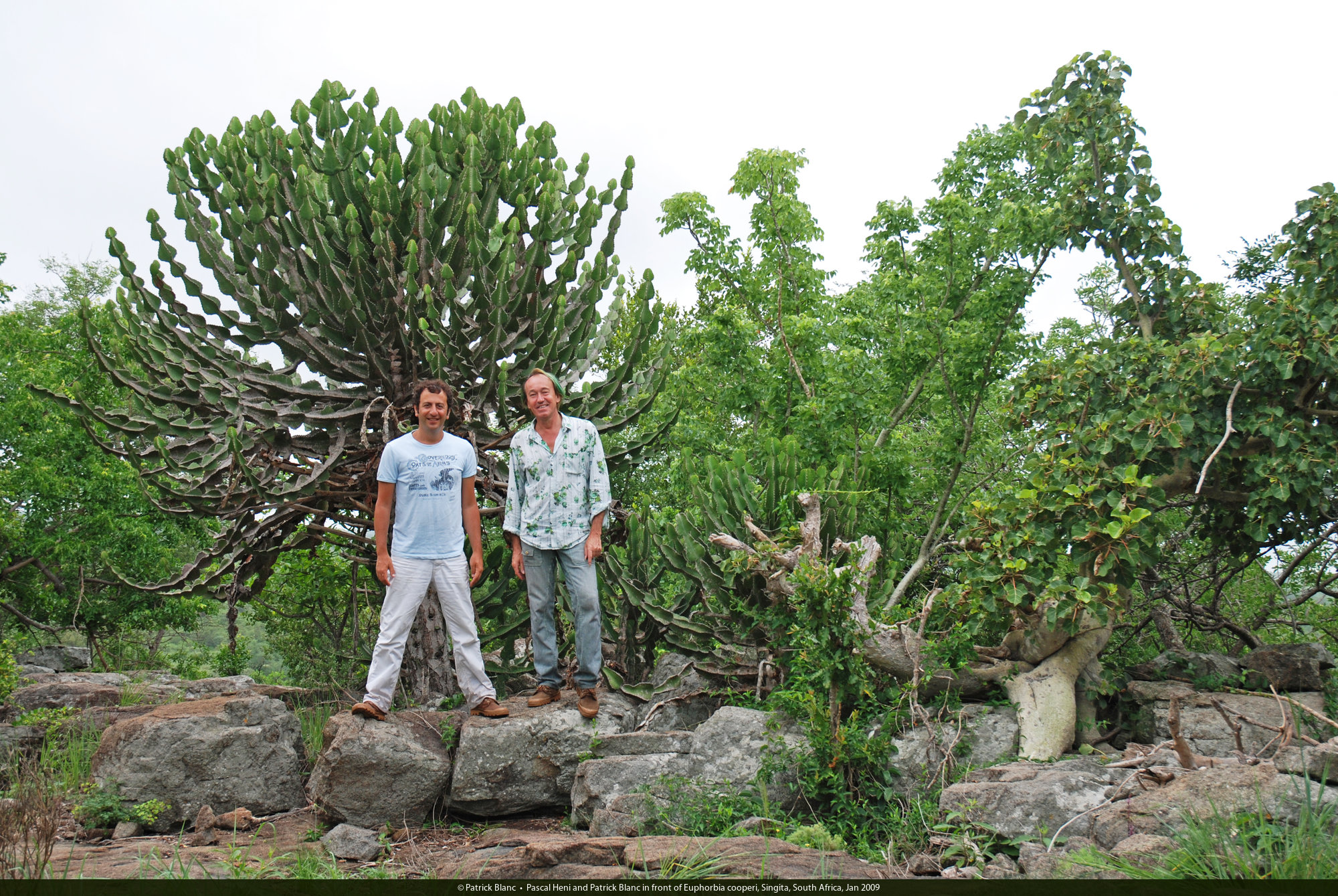 Pascal Heni and Patrick Blanc in front of Euphorbia cooperi, Singita, South Africa, Jan 2009