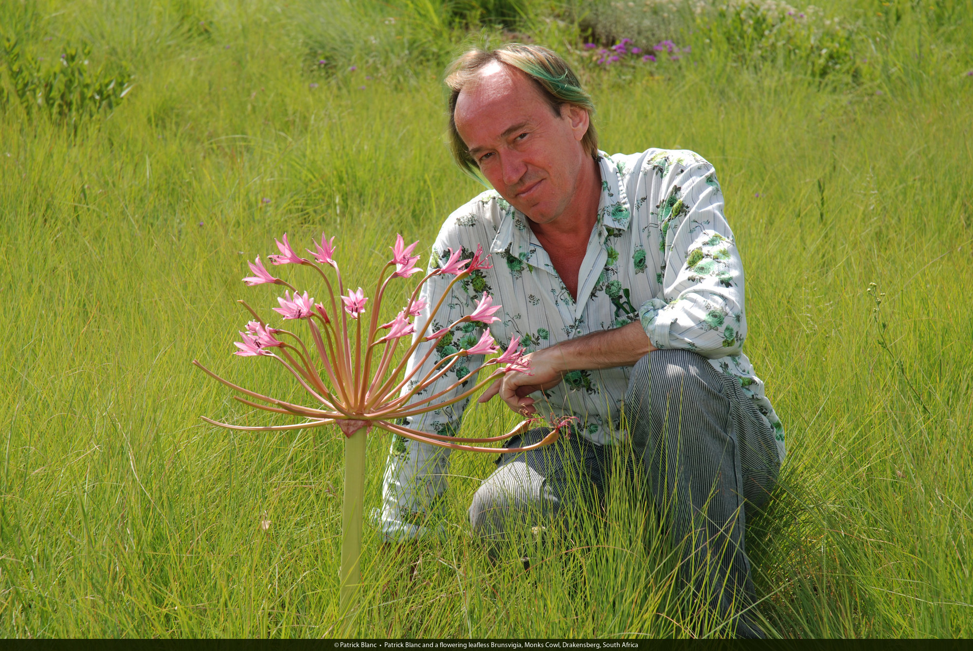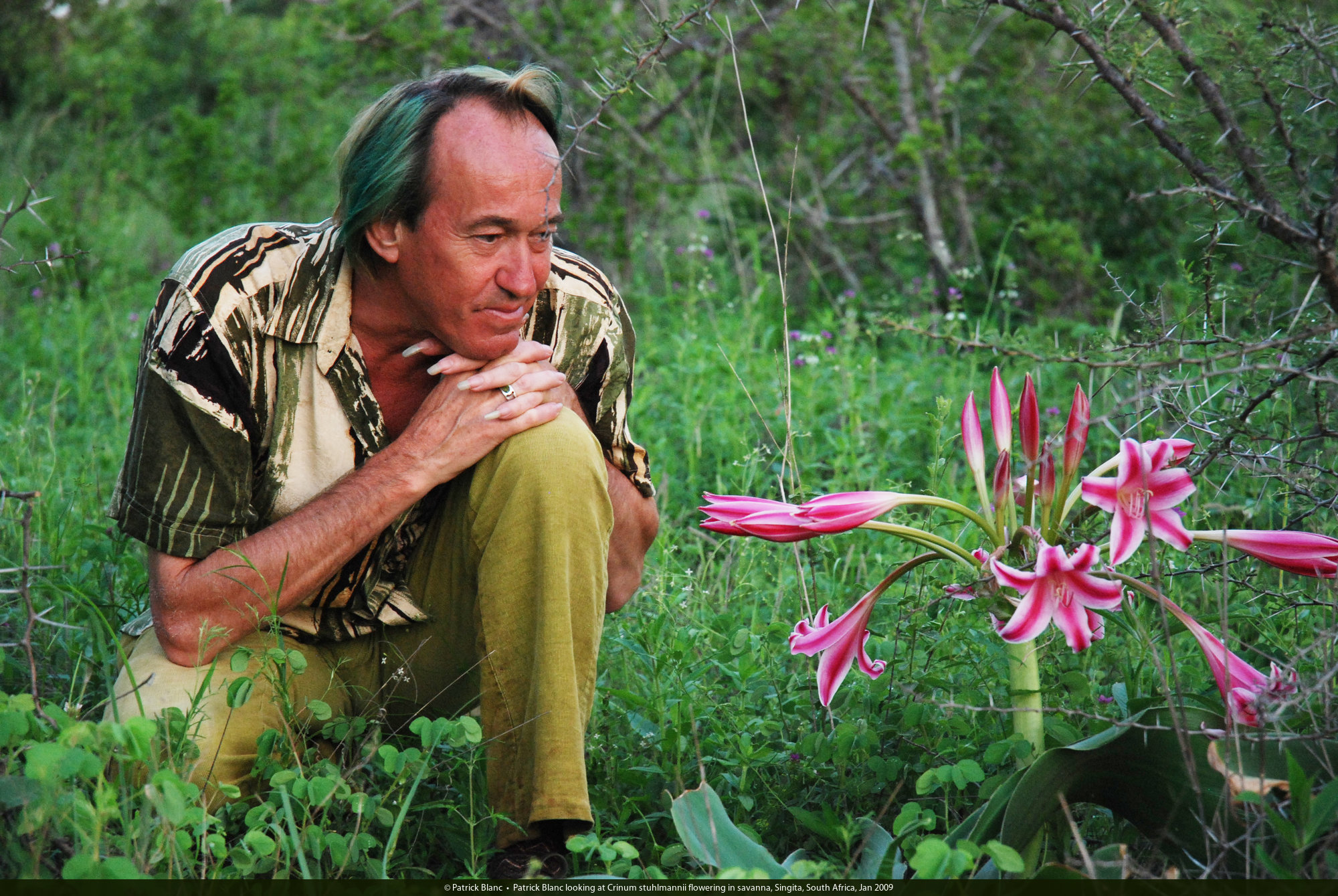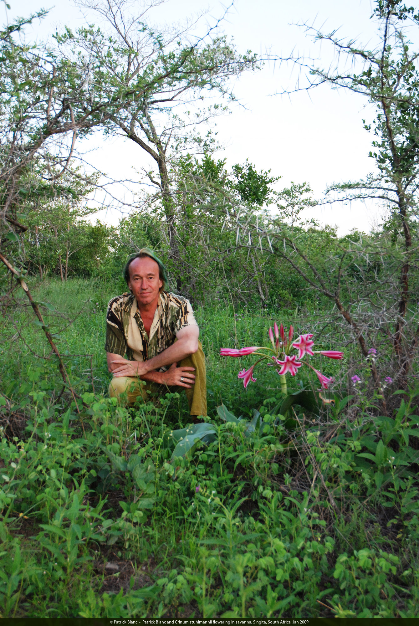 Patrick Blanc and Crinum stuhlmannii flowering in savanna, Singita, South Africa, Jan 2009